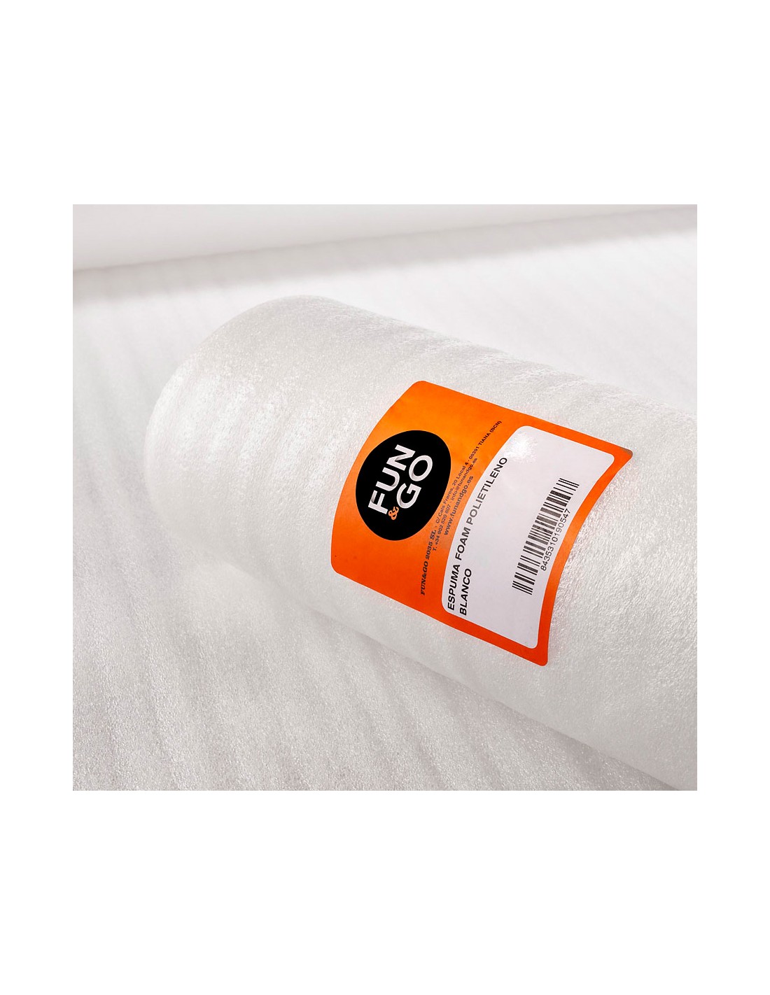 Espuma protectora de foam FUN&GO Para protección de superficies de trabajo, pintura, bricolaje, protección de objetos en mudanzas, etc. Grosor 1 mm. Color blanco. Rollo 1,20x25 m.