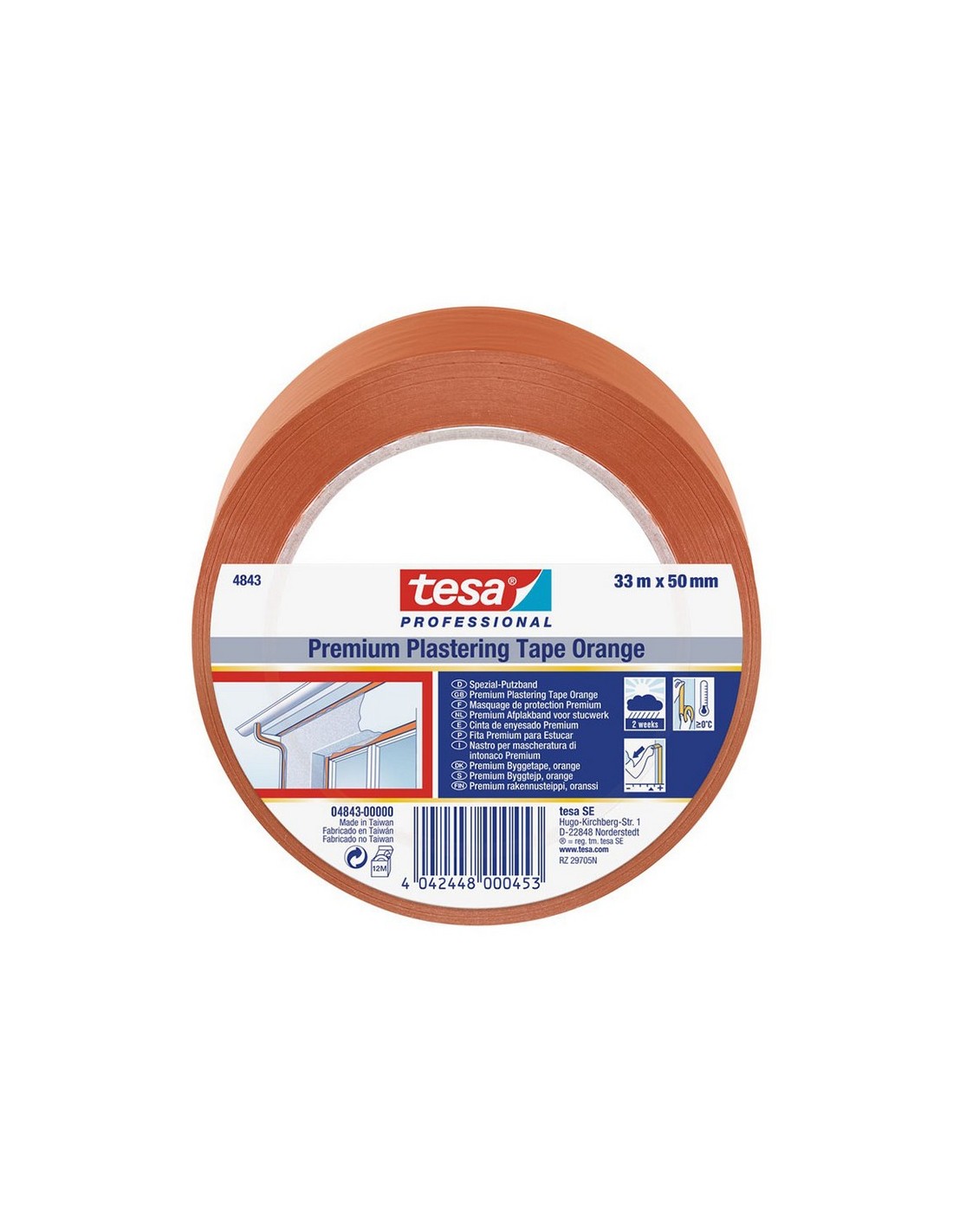 Cinta revoco TESA Premium 4843 Caucho modificado. PVC plastificado con soporte liso. Para superficies rugosas o porosas. Soporta humedad, ácidos y productos químicos. Se retira sin dejar residuos. Adecuada para el enmascarado durante los procesos de enyesado, pintura, estucados, e 33 m x 50 mm.