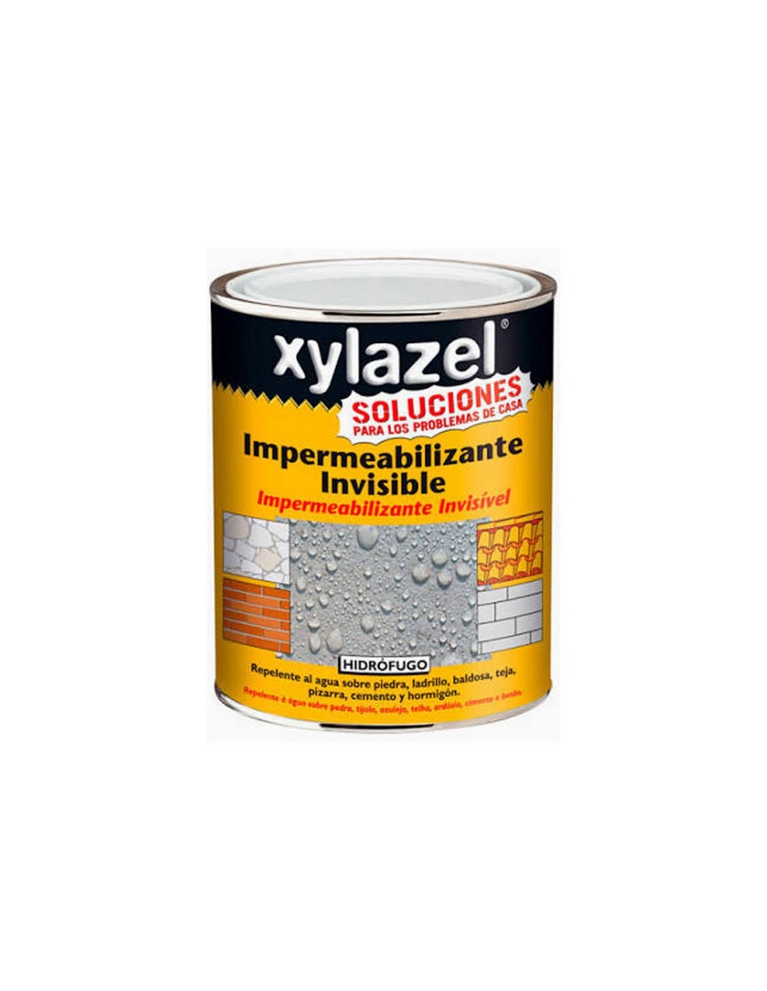 Impermeabilizante XYLAZEL Soluciones Cobertura 10 m²/L. Tiempo de secado al tacto 30 minutos, repintado 2 horas. Capas 2. Para Materiales de construcción como cemento, hormigón, ladrillo, baldosa, terrazo, piedra y todo tipo de materiales porosos. Especial exteriores. 750 ml. Incoloro satinado. 750 ml.
