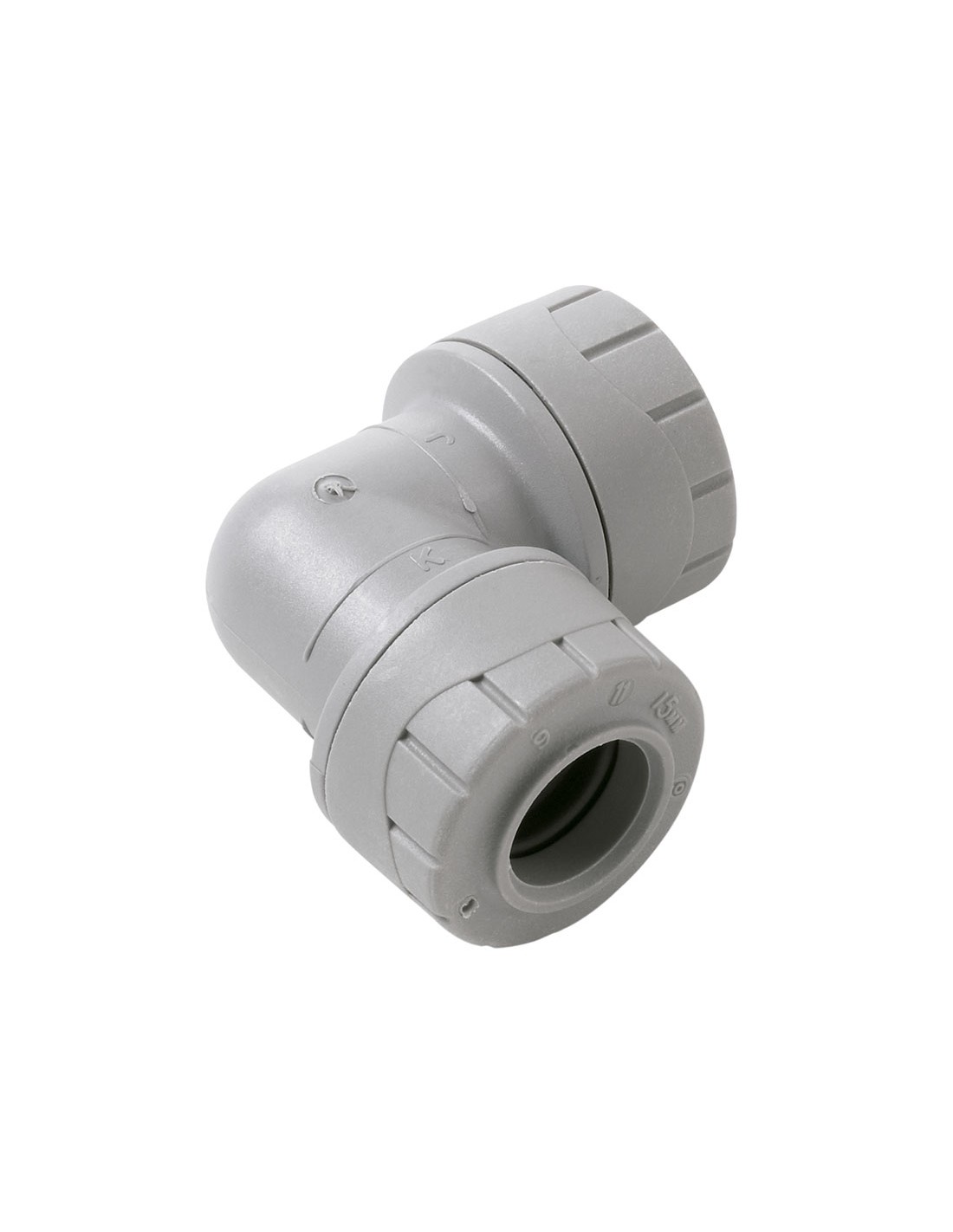 Tubería y accesorios de polibutileno STANDARD HIDRÁULICA Polyplumb. Plástico gran flexibilidad, elevada resistencia al calor, baja deformación y menor dilatación térmica lineal. Adecuado instalaciones empotradas o a la vista de fontanería (agua fría y caliente), calefacción central a radiadores y bajo suelo. Desmonta Codo H-H. ø 22-90º.