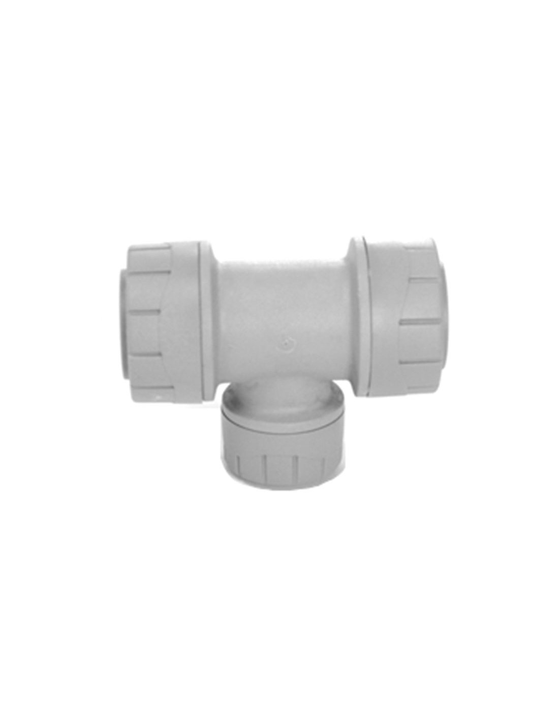 Tubería y accesorios de polibutileno STANDARD HIDRÁULICA Polyplumb. Plástico gran flexibilidad, elevada resistencia al calor, baja deformación y menor dilatación térmica lineal. Adecuado instalaciones empotradas o a la vista de fontanería (agua fría y caliente), calefacción central a radiadores y bajo suelo. Desmonta Te reducida H. 22-15-15.