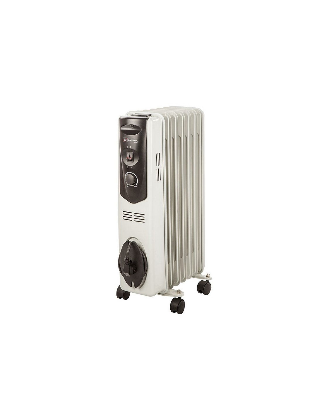 Radiador de aceite S&P Sahara. 3 potencias. Dispositivo antiheladas: conecta el aparato cuando la temperatura ambiente es inferior a 5ºC. Termostato regulable. Ruedas de transporte. 600/900/1500 W.