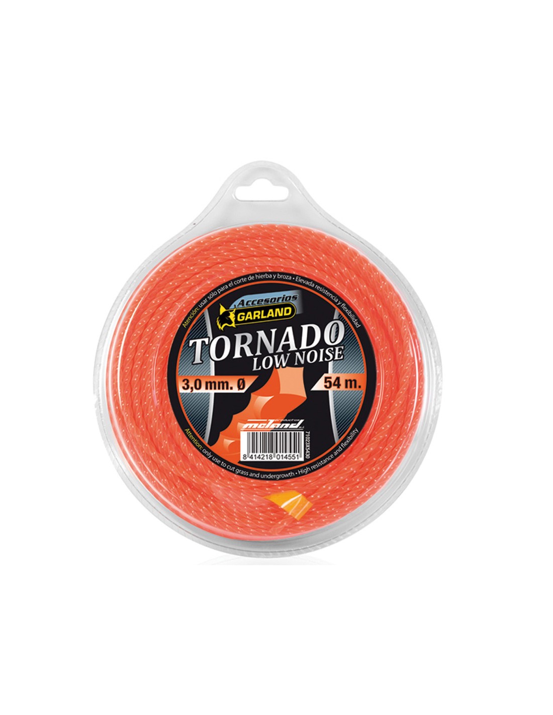 Desbrozadora, hilo nilón Tornado en espiral GARLAND. Uso universal para desbrozadora de más de 30 cc. Gran duración y flexibilidad. ø 3,3 mm x 40 m.