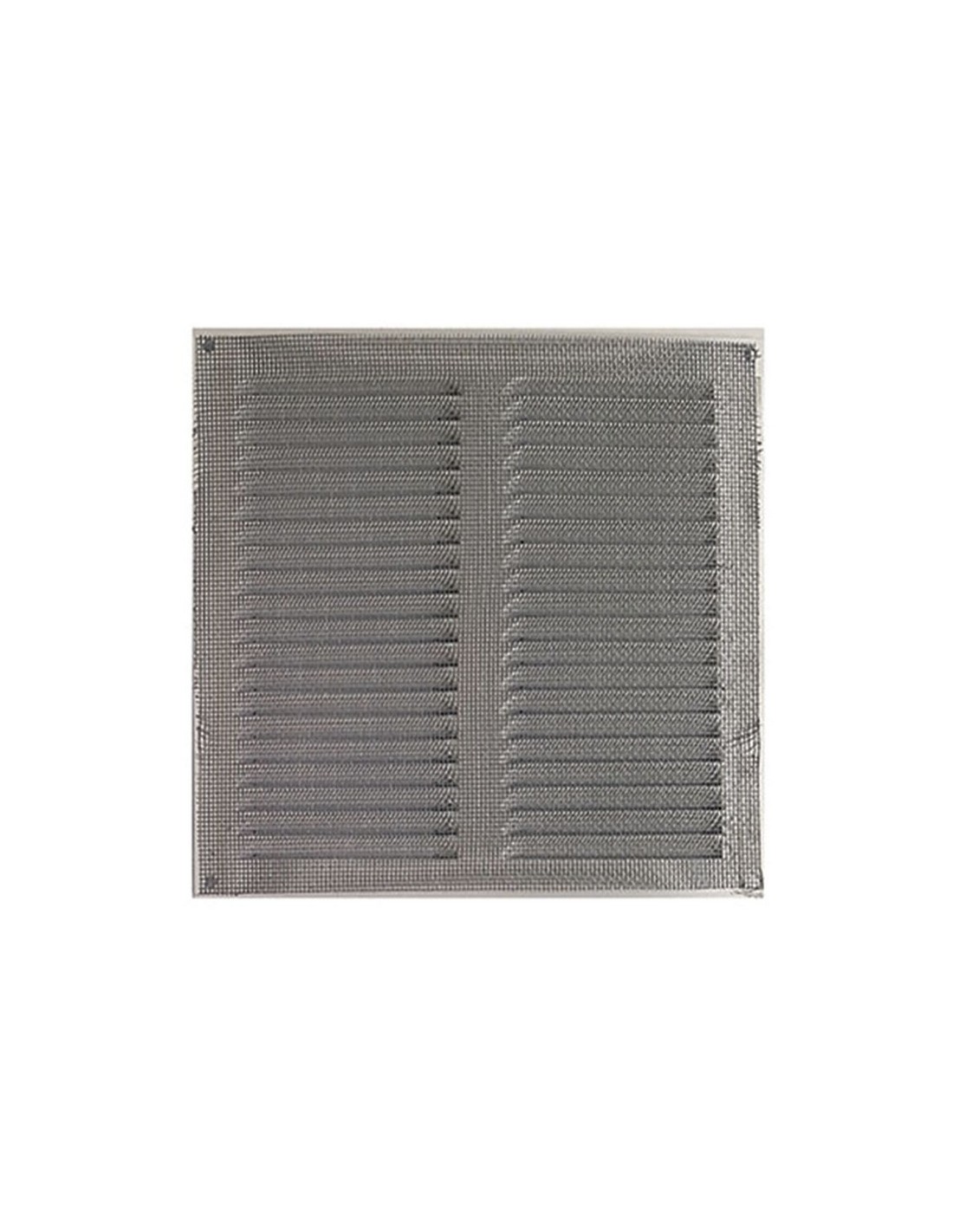 Rejilla ventilación con mosquitera interior Aluminio. Sin pestaña lateral. Grosor 0,8 mm. Uso doméstico. Anodizado plata. 20x20 cm. Paso aire 62,5 cm².