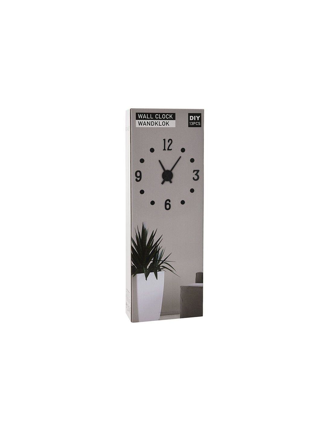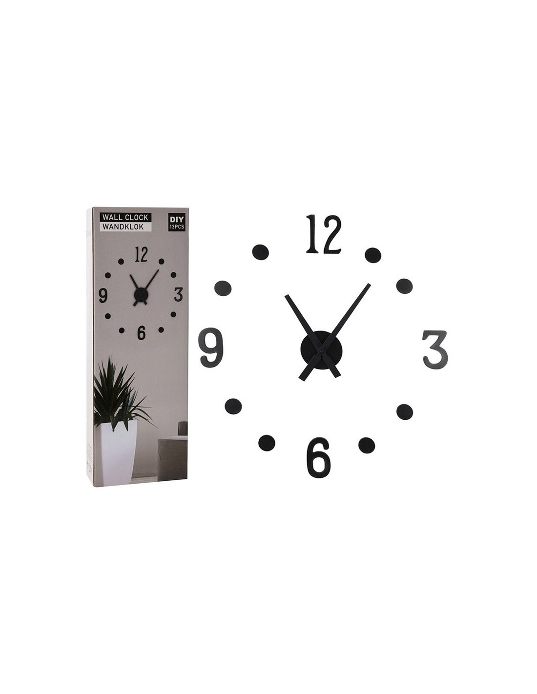 Reloj de pared Wall 213 Mdf. Números adhesivos negros. Montaje mural. Funcina con 1 pila AA (LR06) no incluida. 13 piezas.