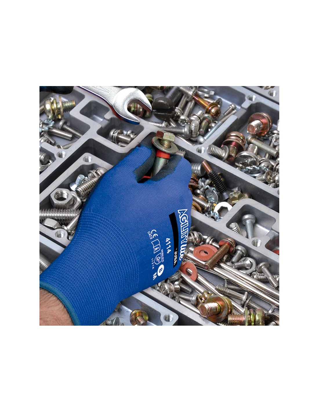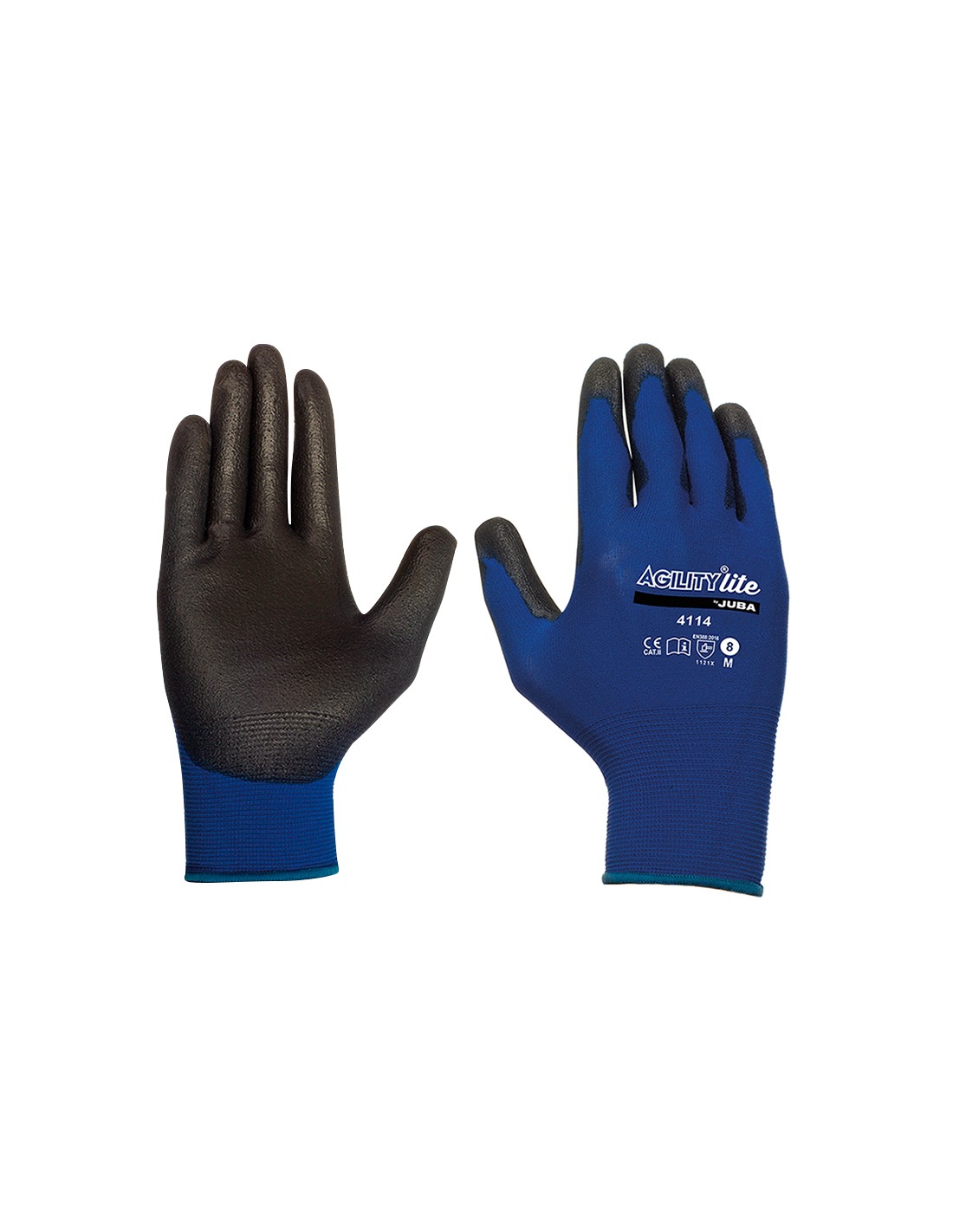 Guante JUBA Agility Lite H4114 Nilón ligero con recubrimiento de PU en palma. Galga 18. Usos: aplicaciones de montaje ligero, microprocesadores, montaje de circuitos, industria del automóvil, proceso de montaje final, cosmética, industria óptica, fotografía, imprenta, almacenes y uso general. Talla 9.
