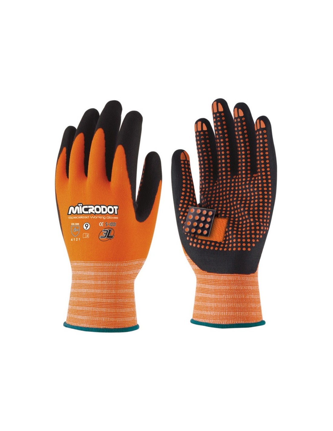 Guante 3L WX-666. Nilón sin costuras con recubrimiento de nitrilo foam y dots de nitrilo en palma. Excelente ergonomía y agarre. Uso: sector automoción, mecánicos, industria del cartonaje, ensamblajes y otros similares. Talla 9.