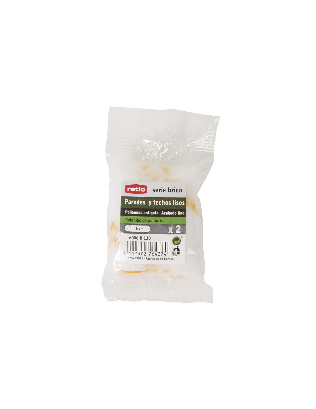 Minirodillo antigota RATIO serie Brico. 100% poliamida. Ideal para paredes, techos, pladur. Acabados muy finos. Recomendado para todo tipo de pinturas. Recambio 6 cm. 2 unid.