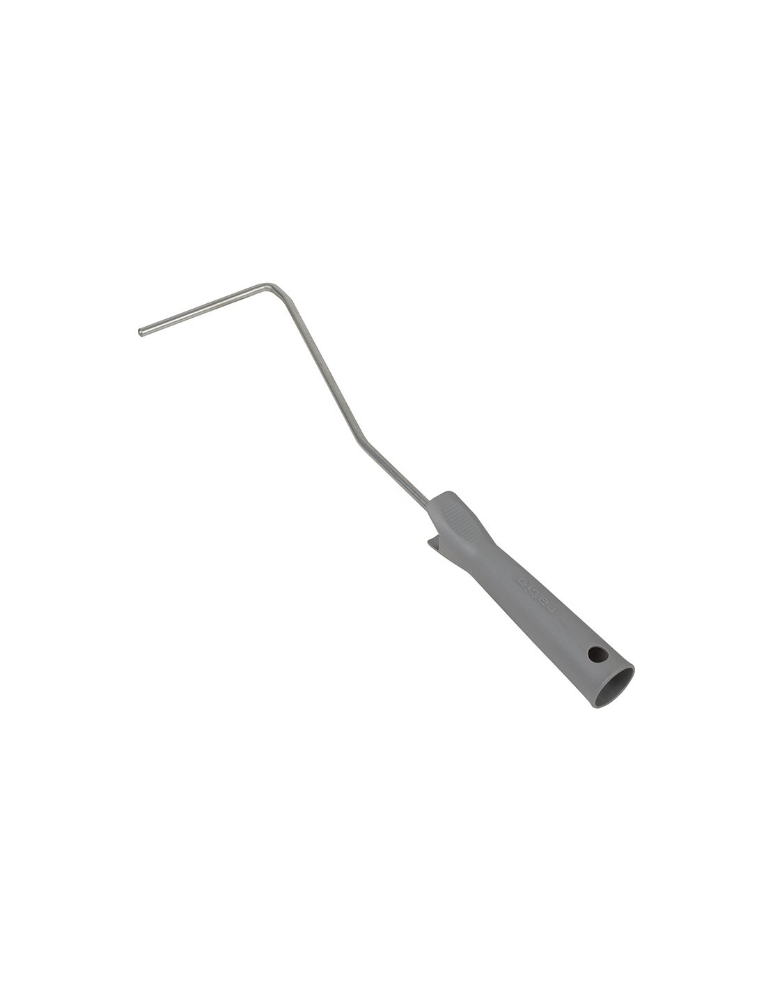 Mangos para mini rodillos EHS. Mango ergonómico de polipropileno. Resistente. Color gris. Varilla acero cincado ø 6 mm. 20 cm. Salida varilla 8,5 cm aprox.\r\nMango largo.