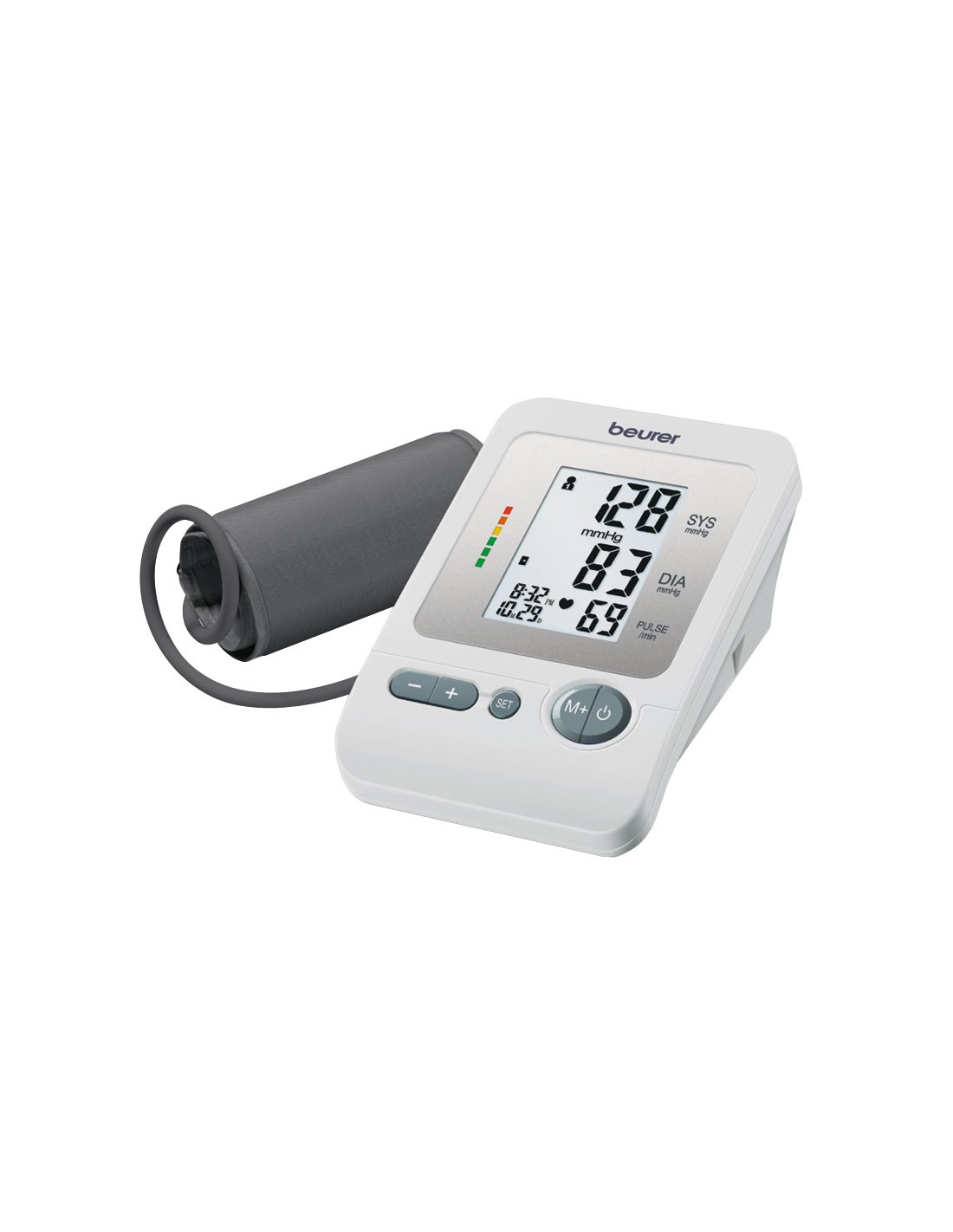 Tensiómetro automático BEURER BM-26. Medición automática de tensión sanguínea y pulsaciones. Memoria 4x30 mediciones. Pantalla digital de fácil lectura. Detección de arritmias. Promedio de las 3 últimas mediciones. Desconexiones automática.