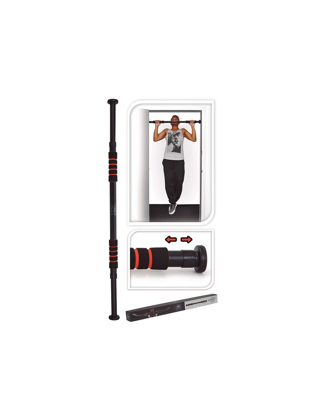 Barra dominadas para puerta Acero. Peso máximo 100 kg. Asas de fieltro. Regulable 63-96 cm.