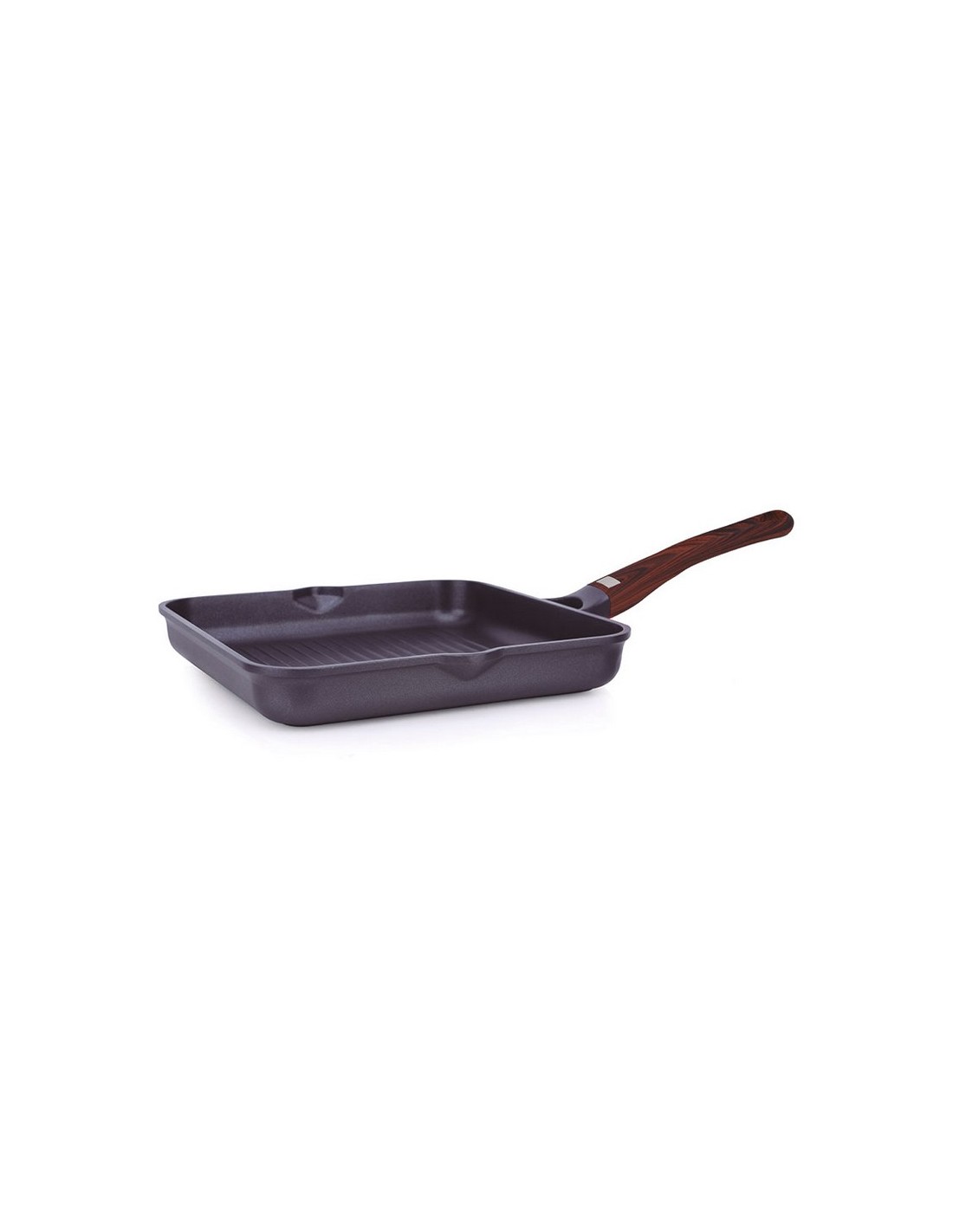 Sartenes y cacerolas aluminio HABITEX EcoMax Aluminio fundido indeformable 6 mm. Antiadherente 3 capas libre PFOA. Mango baquelita efecto nogal acabado soft touch. Fondo difusor con base ferrítica "full induction". Para todo tipo de cocinas. todas las cacerolas incluyen asas de silicona en ollas y cacerolas. Grill 28x28 cm.