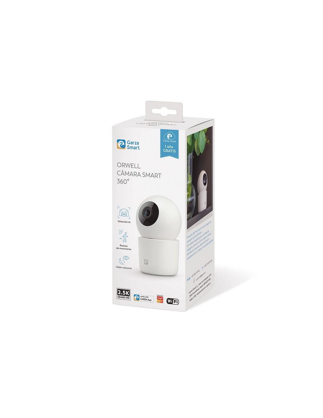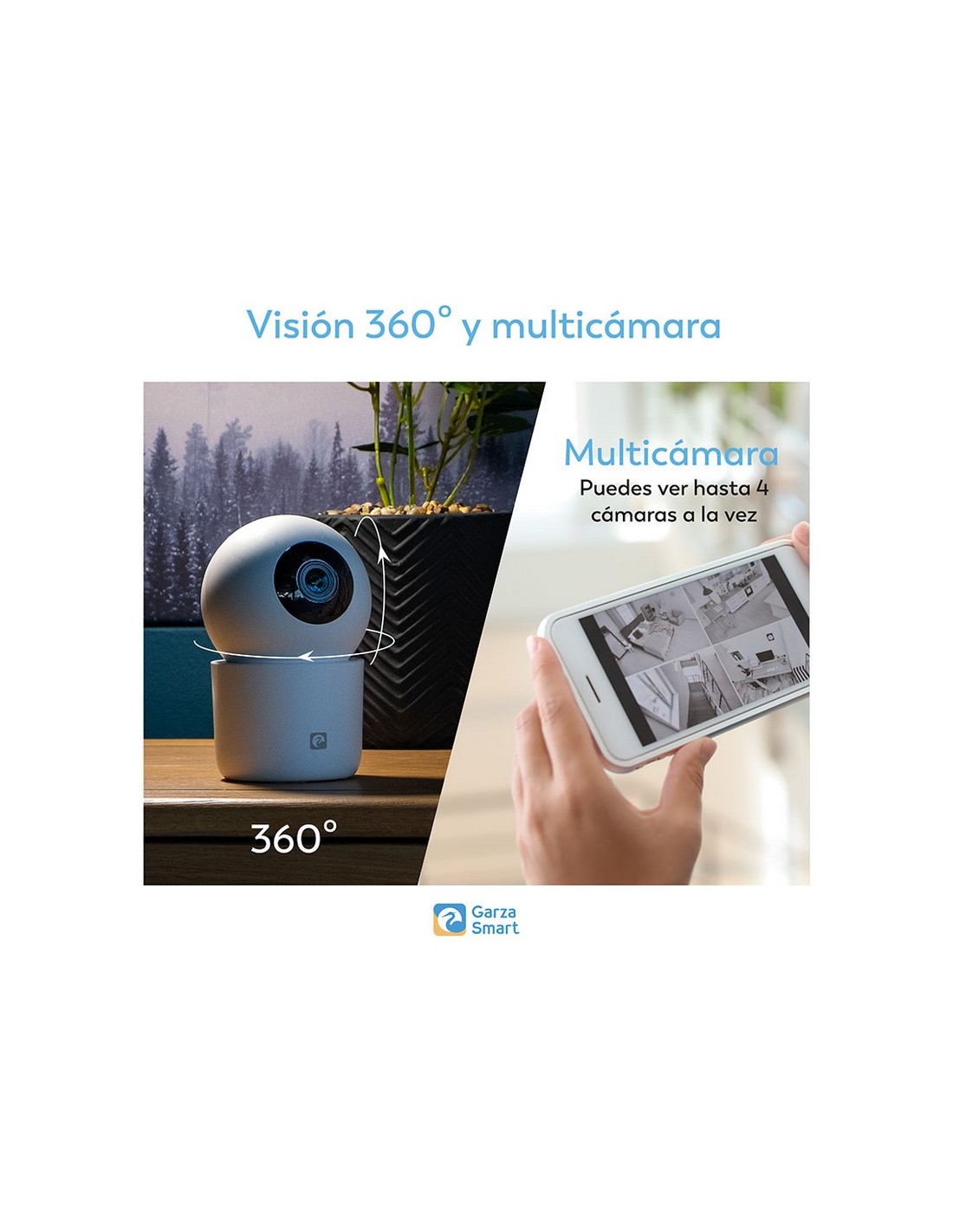 Cámara 360 Wifi Garza 1440P Conexión WiFi 2.4 GHz. Grabación vídeo HD. Almacenamiento. Visión nocturna y detección de movimientos. Audio bidireccional. Color blanco. Compatible con Google y Alexa. Grabación 2,5 K.