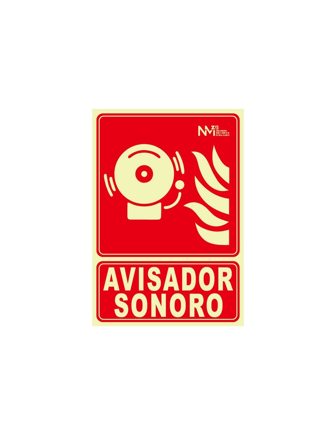 Señales de protección contra incendios NMZ Fabricadas en PVC luminiscente. Grosor 0,7-1 mm según modelo Clase A (1 mm) o. Clase B (0,7 mm). AVISADOR SONORO.