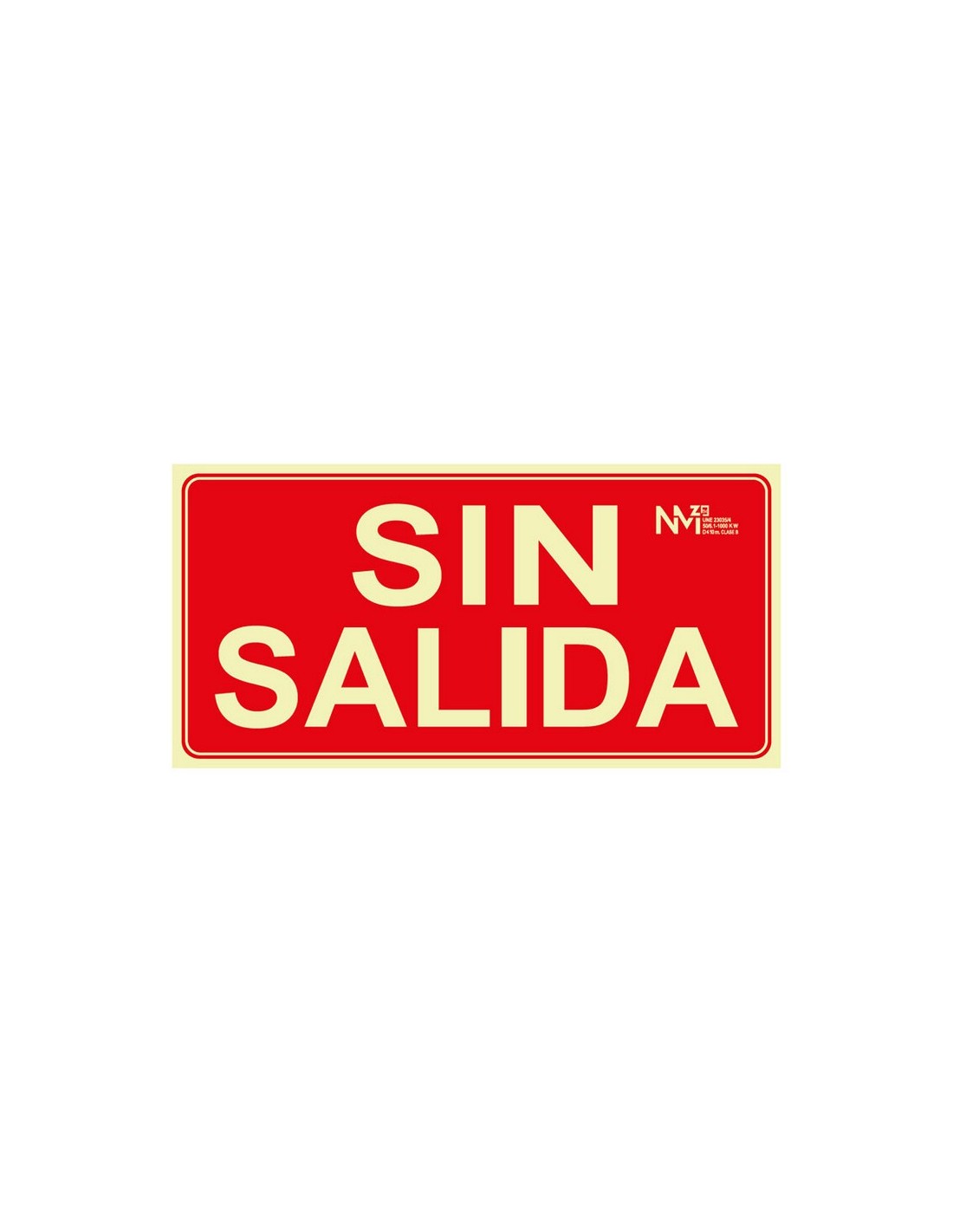 Señales de protección contra incendios NMZ Fabricadas en PVC luminiscente. Grosor 0,7-1 mm según modelo Clase A (1 mm) o. Clase B (0,7 mm). SIN SALIDA. Clase A. 320xh.160 mm.