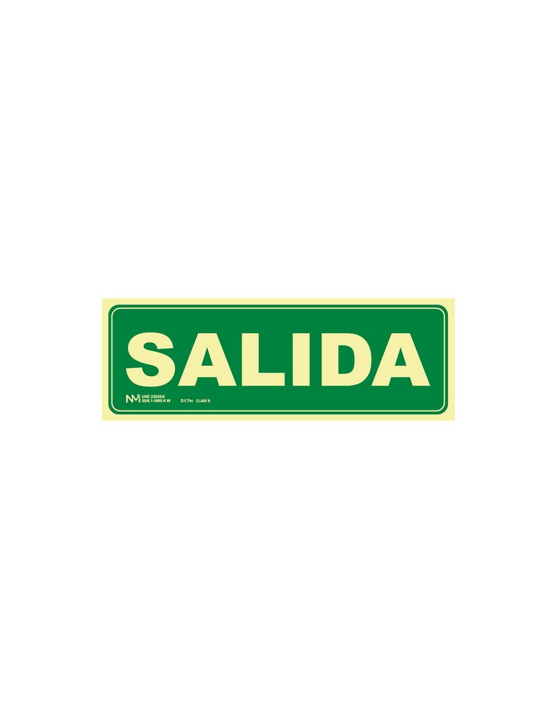 Señales de evacuación NMZ Fabricadas en PVC luminiscente. Grosor 0,7-1 mm según modelo, Clase A (1 mm) o. Clase B (0,7 mm). Distancia de visión 10 m. SALIDA. Clase B. 300xh.105 mm.