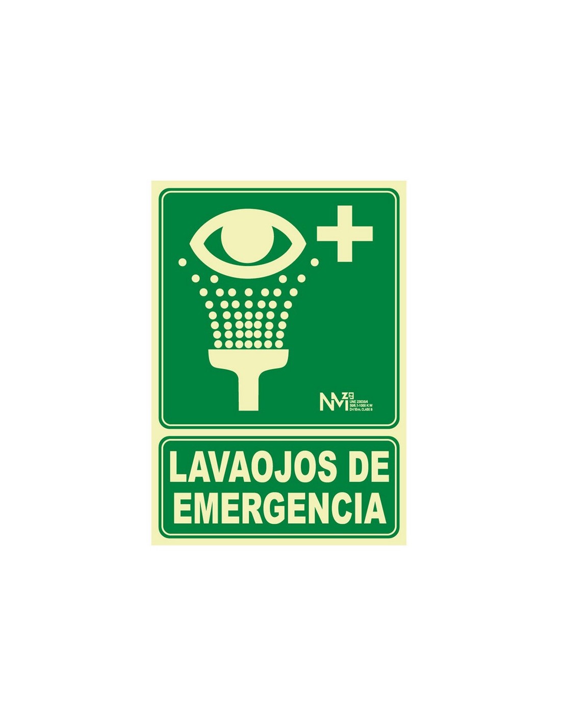Señales de evacuación NMZ Fabricadas en PVC luminiscente. Grosor 0,7-1 mm según modelo, Clase A (1 mm) o. Clase B (0,7 mm). Distancia de visión 10 m. LAVAOJOS DE EMERGENCIA.
