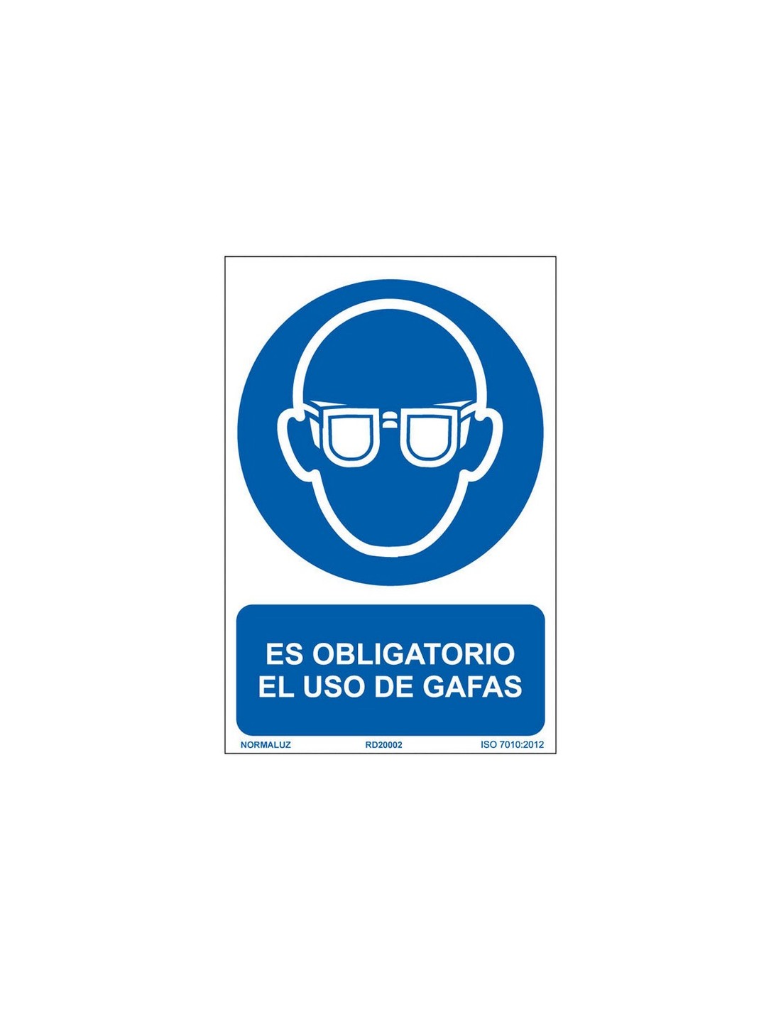 Señales de uso obligatorio NMZ Fabricadas en lámina de PVC 0,7 mm. 210xh.300 mm. OBLIGATORIO GAFAS.