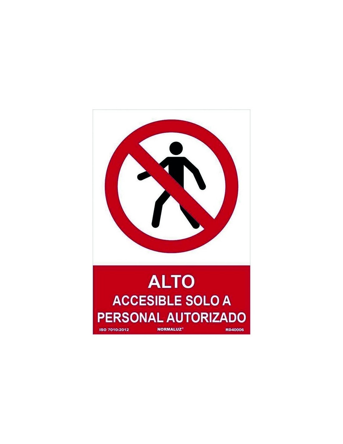 Señales de prohibición NMZ Fabricadas en PVC 0,7 mm. 210xh.300 mm. PROHIBIDO ALTO PERSONAL AUTORIZADO.