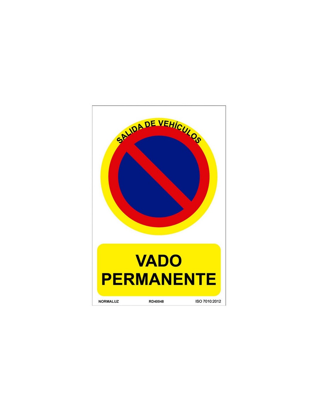 Señales de prohibición NMZ Fabricadas en PVC 0,7 mm. 210xh.300 mm. PROHIBIDO VADO PERMANENTE.