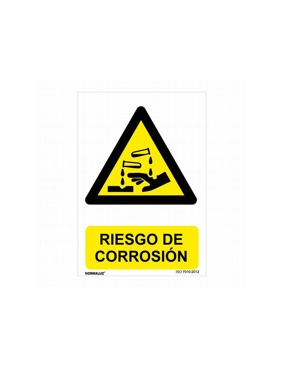 Señales de peligro/advertencia NMZ Fabricadas en PVC 0,7 mm. 210xh.300 mm. RIESGO DE CORROSIÓN.