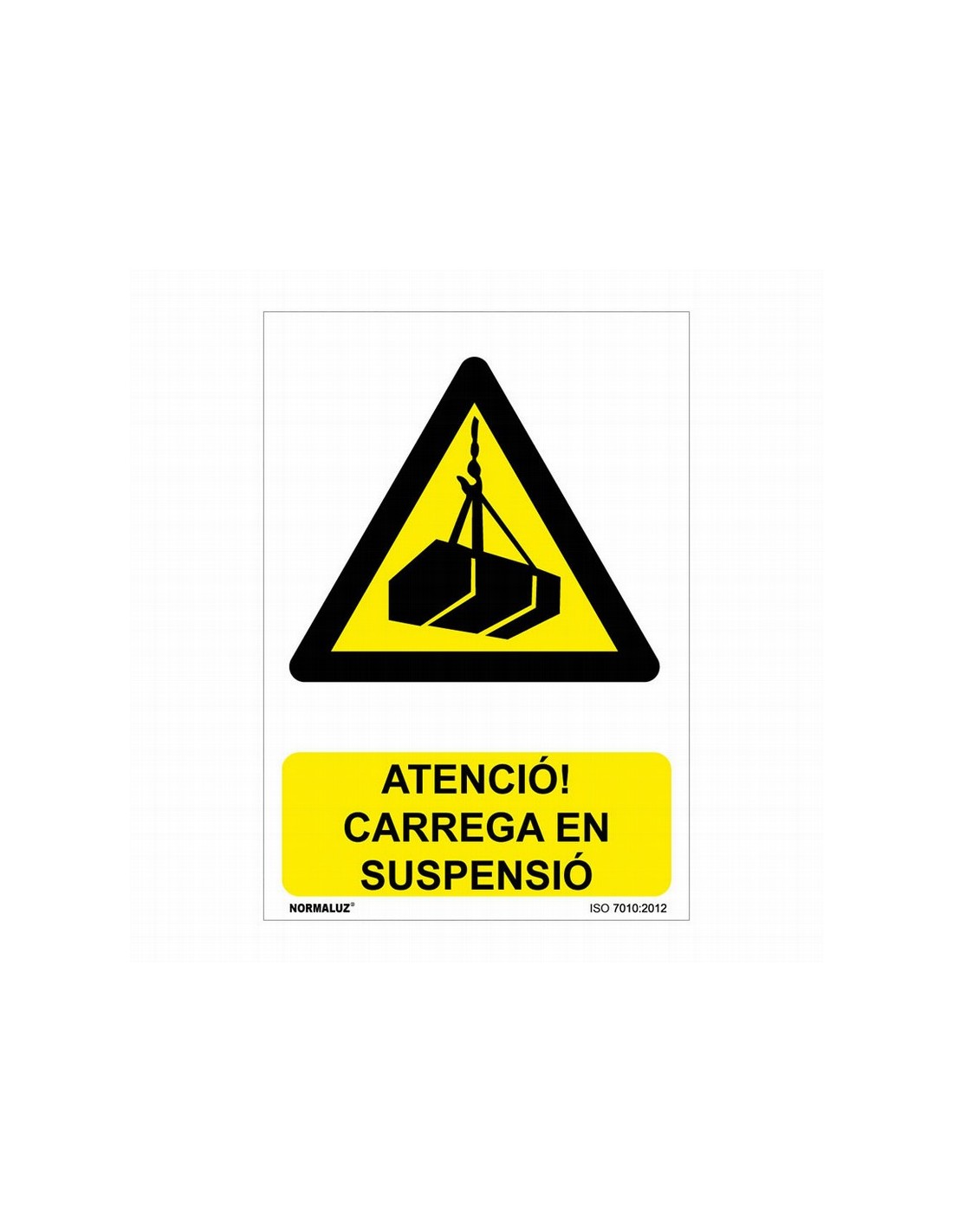 Señales de peligro/advertencia en catalán NMZ Fabricadas en PVC 0,7 mm. 210xh.300 mm. PERILL CÀRREGA EN SUSPENSIÓ.