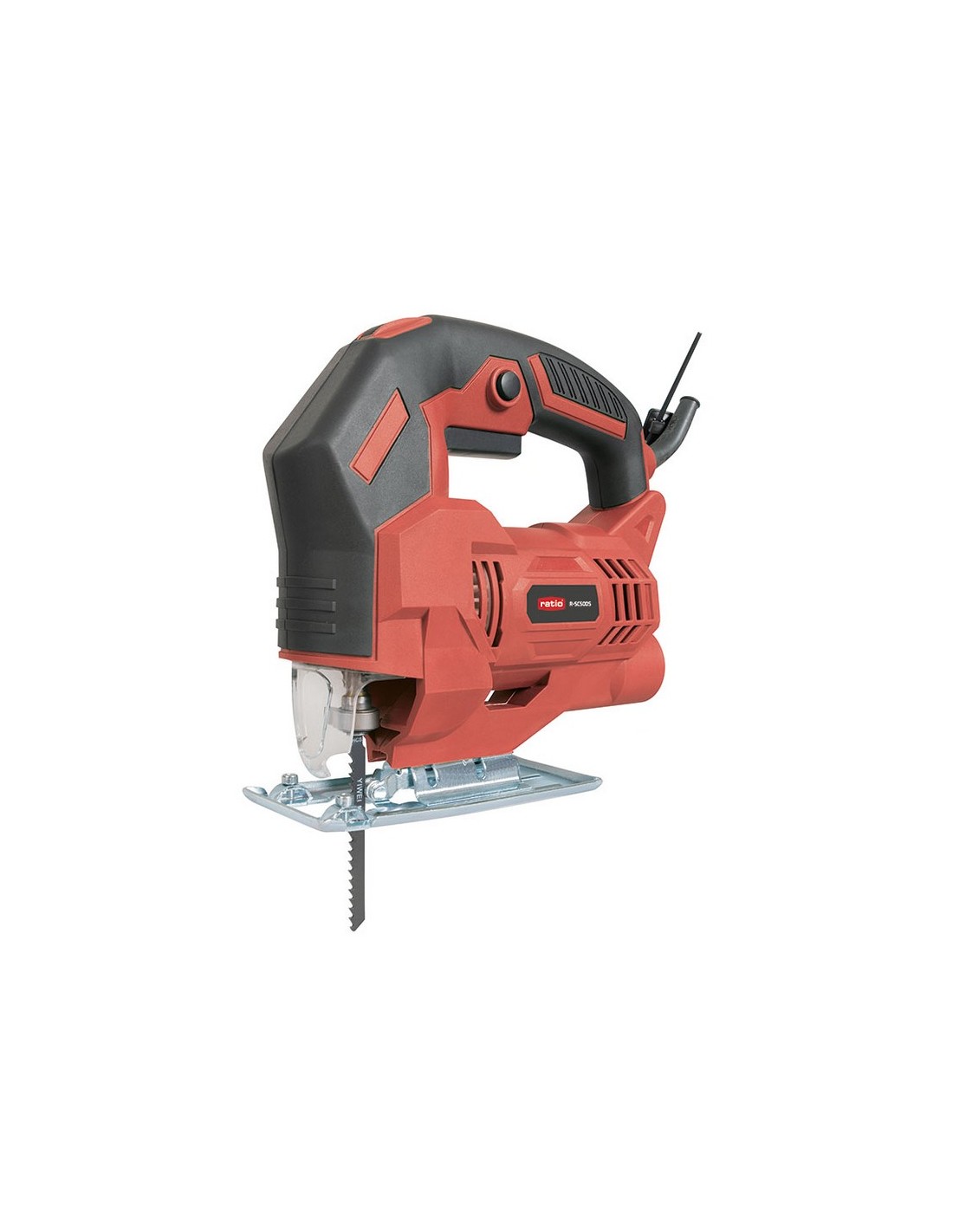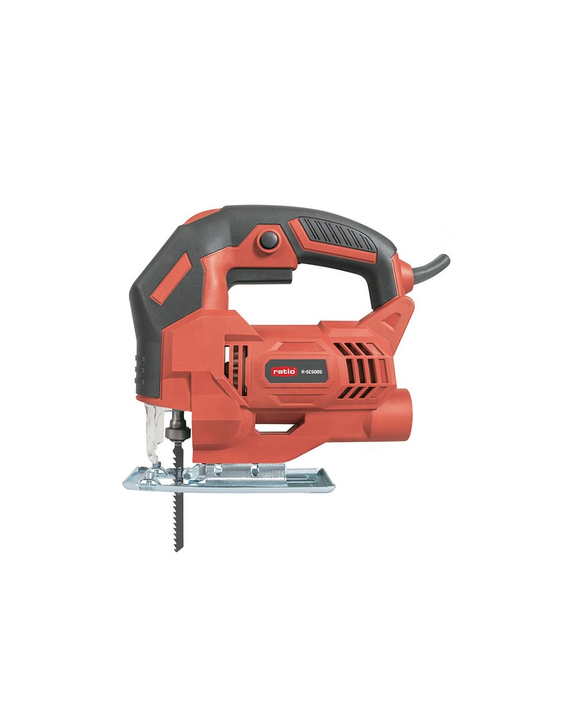 Sierra caladora RATIO R-SC500S Pendular 4 posiciones. Base de aluminio con protector. Velocidad variable. Interruptor de bloqueo. Empuñadura bimaterial. Cambio rápido de cuchilla con inserción T (tipo Bosch). Potencia: 500 W.