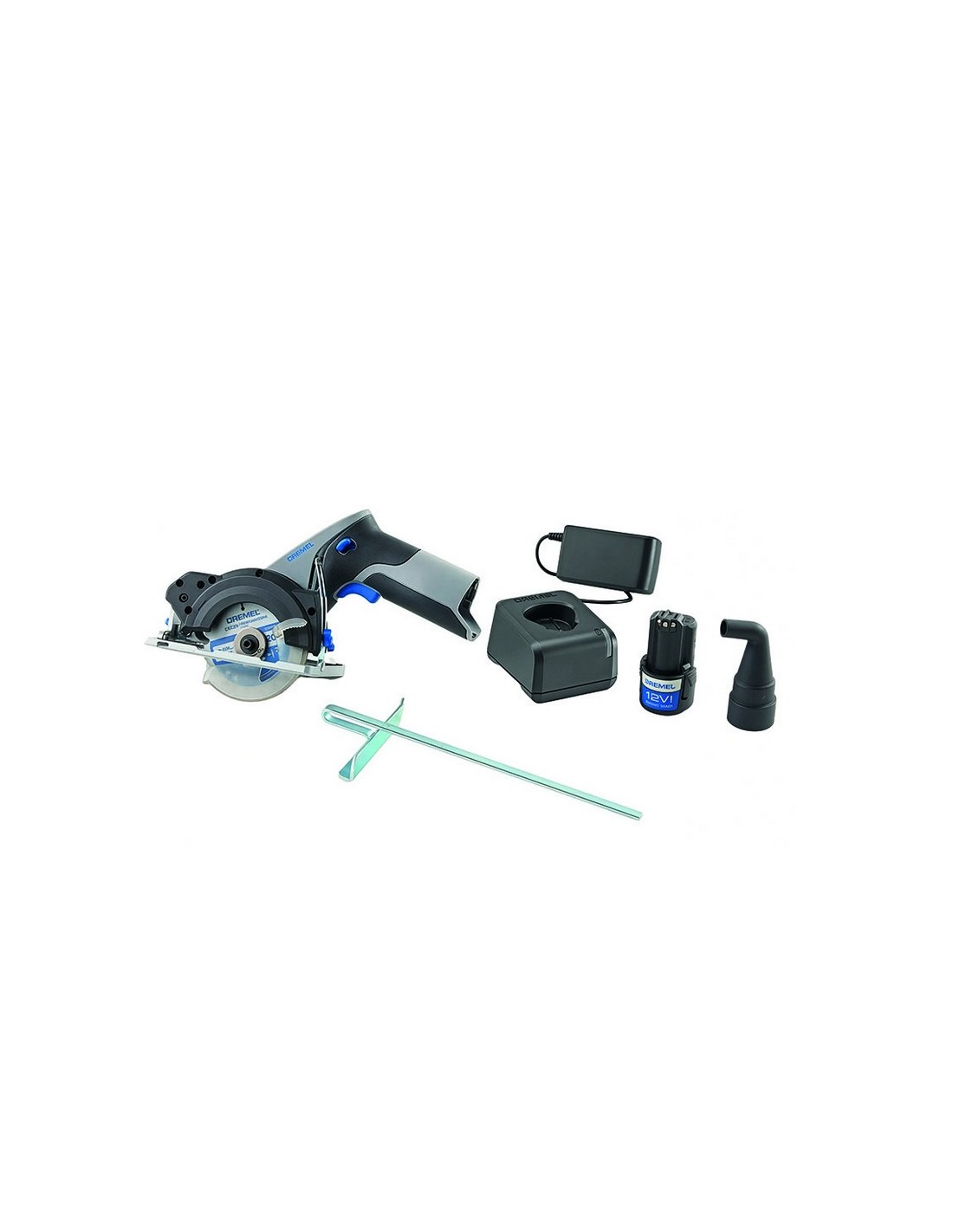 Sierra circular compacta batería Dremel CS12V-S1 Blueprint con accesorios Serrado sencillo y rápido con motor de 12 V sin escobillas; para más potencia, eficacia, menos mantenimiento y una mayor duración de la batería. Incluye Sierra circular compacta Dremel 12V. Adaptador para aspiradora. Batería 12V. Cargador 12V. Hoja de sierra circular multimaterial. Tope paralelo. 1 batería 12V. 2.0 Ah. Guía laser. Cargador rápido.