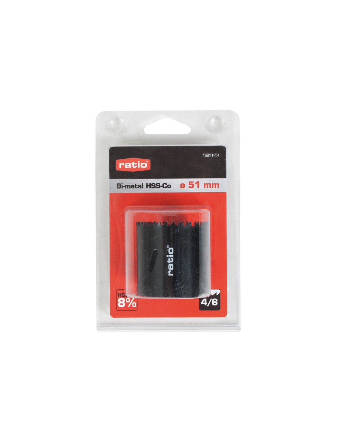 Sierra corona bimetal HSS-Co RATIO 1691 Acero rápido M42 (HSS-Co 8%). Diente variable, paso 4/6 dientes por pulgada. Profundidad corte 45 mm. Aplicaciones: acero inox: AISI 304, AISI 316,AISI 316L, metales en general. ø 16 mm.