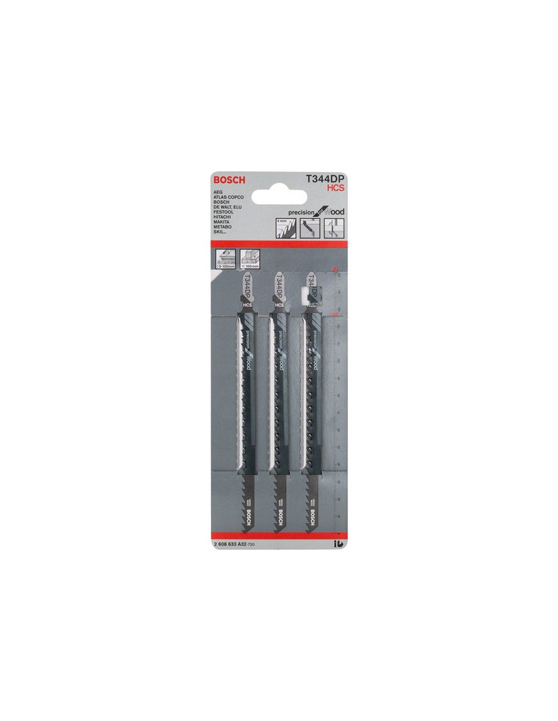 Hoja sierra calar madera BOSCH T344 DP Madera blanda, gruesa, de construcción, tablas de virutas prensadas, madera contrachapada y tablero de carpintero.. Hoja HCS: 152 mm.
