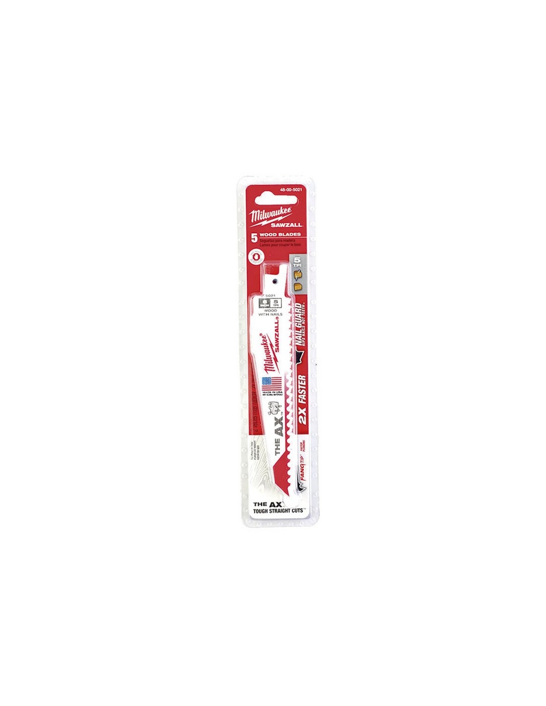 Hoja sierra sable madera/clavos THE AX(T) MILWAUKEE Anclaje universal 1/2". Acero bimaterial. . 150 mm. 5 Tpi. 5 unid.