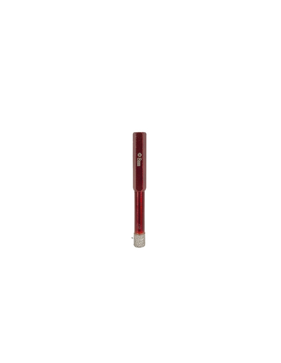 Sierra corona diamante para porcelánico RATIO Corona excelente para corte en seco y con taladro. Para trabajos en seco y sin percusión, husillo hexagonal 8 mm, En su interior contiene una cera refrigerante para obtener un mayor número de agujeros (Nota: si se acaba antes la cera que el diamante, se puede seguir usando perfectamente con agua). Para; porcelánico, mármol, cerámica, gres duro y granito fino. Profundidad máxima: 30 mm. ø 8 mm.