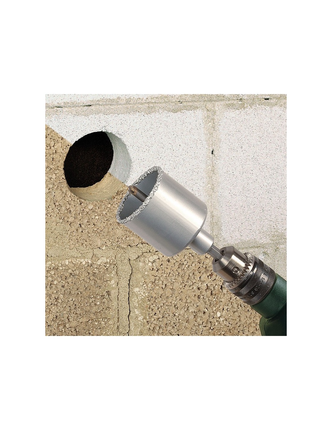 Sierra corona carburo tugnsteno WOLFCRAFT Corona de perforación recubierta de carburo de tungsteno para taladros en paredes de ladrillo y piedra (como ladrillo de piedra pómez, hormigón celular o piedras blandas y de dureza media similares). Con adaptador y broca centradora (ø 8 mm), preinstalados para el uso inmediato. ø 53 mm.