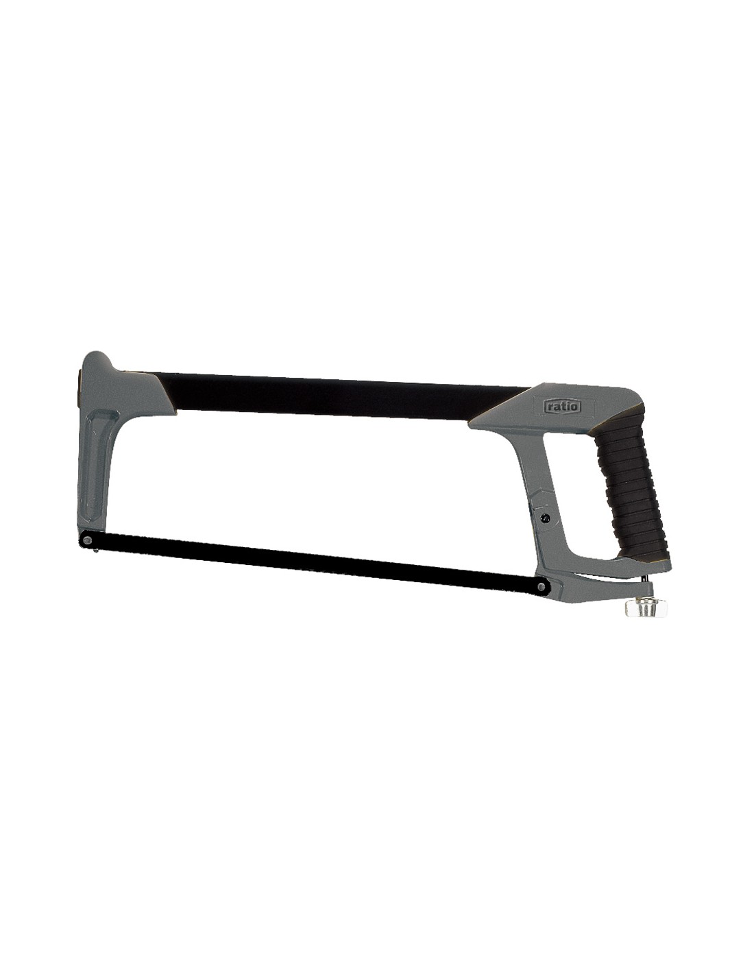 Arco sierra RATIO 6324. Mango antideslizante. Tensión graduable de hoja. Fundición de aluminio ligero. 2 posiciones de corte 90º/45º. Depósito para hojas recambio. 12\"-300 mm.