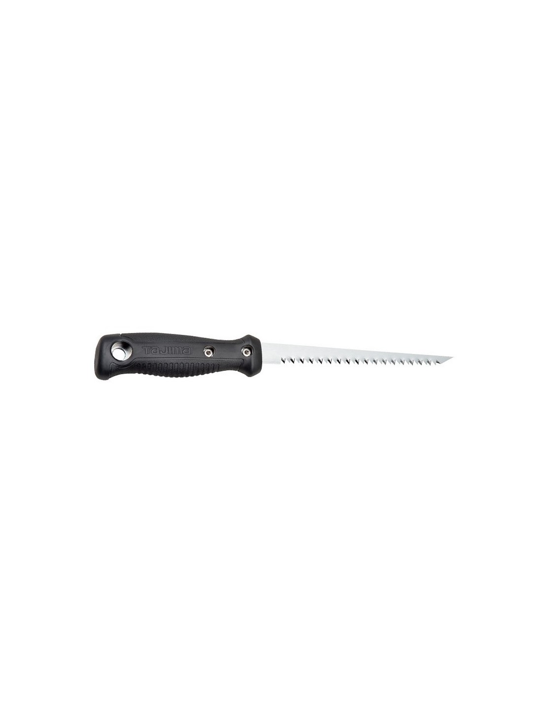 Serrucho placas yeso TAJIMA GT165 Doble filo acero reforzado japonés. Hoja gruesa reemplazable alta resistencia. Mango ergonómico con recubrimiento antideslizante. 285 mm. Hoja 12 cm.