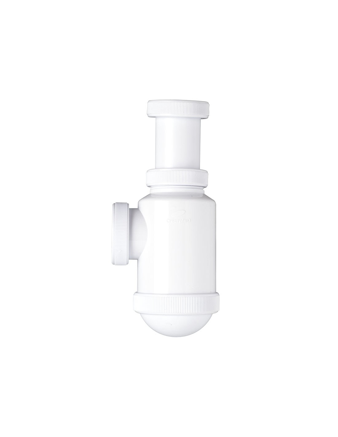 Sifón botella extensible CREARPLAST C-2. Salida horizontal con racor (tuerca loca). 1 1/4\" x ø 32 mm. Extensible 150-312 mm.