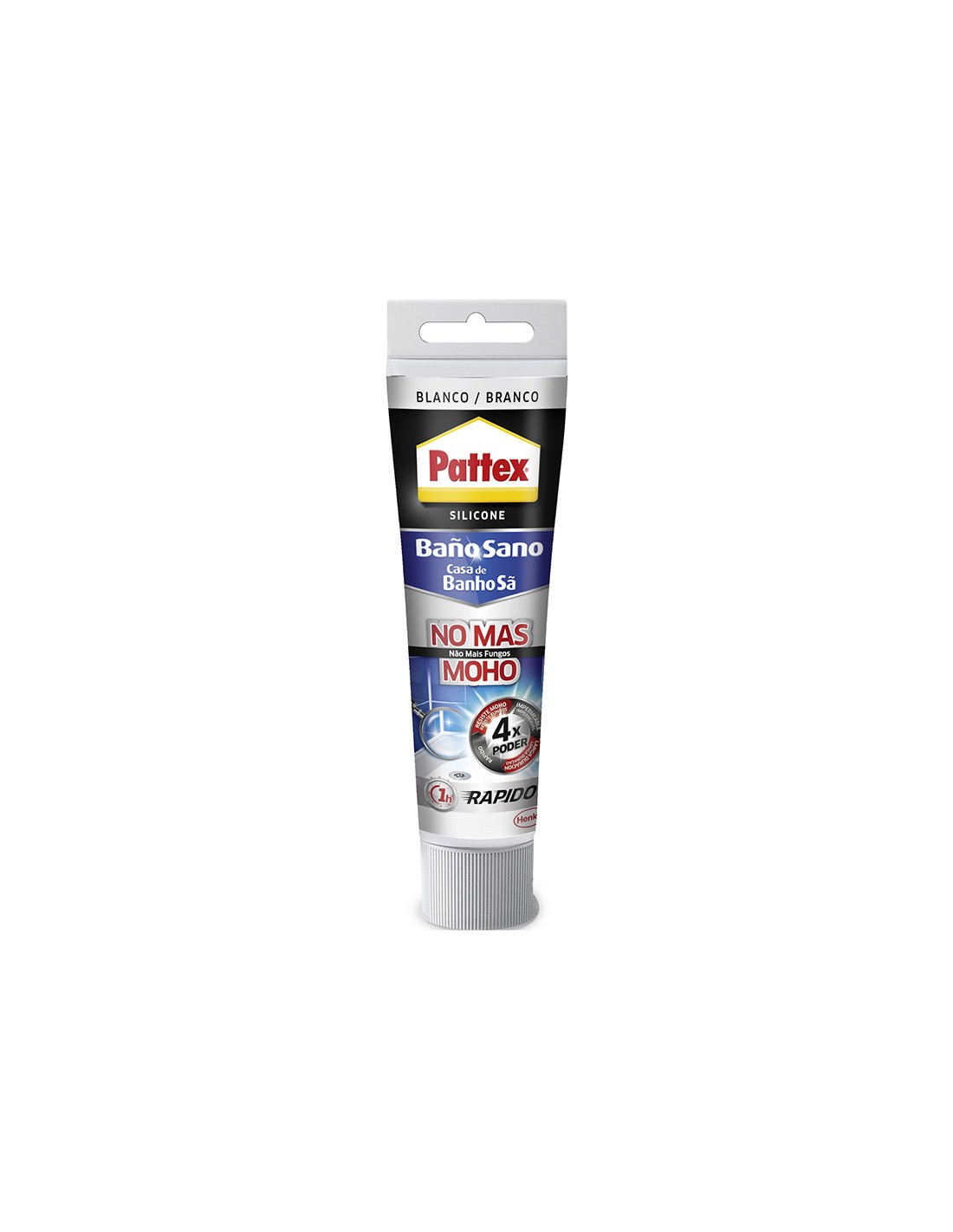 Silicona antimoho PATTEX No más moho. 4 efectos: resistente al moho, impermeable, larga duración y rápida. Sellador de silicona sanitaria antimoho para acabados y sellados de juntas de baño. Buena adherencia sobre cerámica vitrificada, porcelana, vidrio, madera, fibra de vidrio, aluminio Blanca. Tubo 50 ml.
