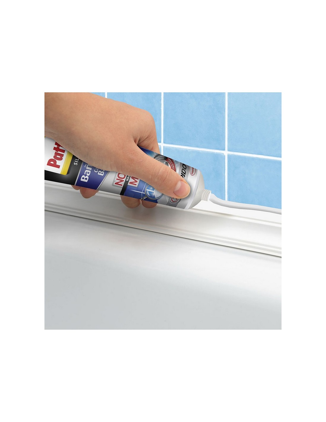 Silicona antimoho PATTEX No más moho. 4 efectos: resistente al moho, impermeable, larga duración y rápida. Sellador de silicona sanitaria antimoho para acabados y sellados de juntas de baño. Buena adherencia sobre cerámica vitrificada, porcelana, vidrio, madera, fibra de vidrio, aluminio Translúcida. Tubo 50 ml.