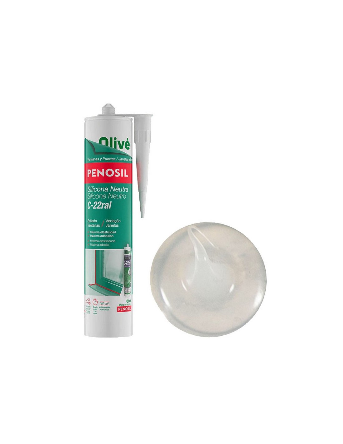 Silicona neutra ventanas PENOSIL C-22 Conserva todas las propiedades de elasticidad y adherencia, sin sufrir envejecimiento. No contiene aditivos corrosivos o de olor fuerte. Excelente adhesión sobre amplia gama de sustratos sin imprimación. Apta para materiales porosos y no porosos. Secado rápido. Cartucho 300 ml. Transparente.