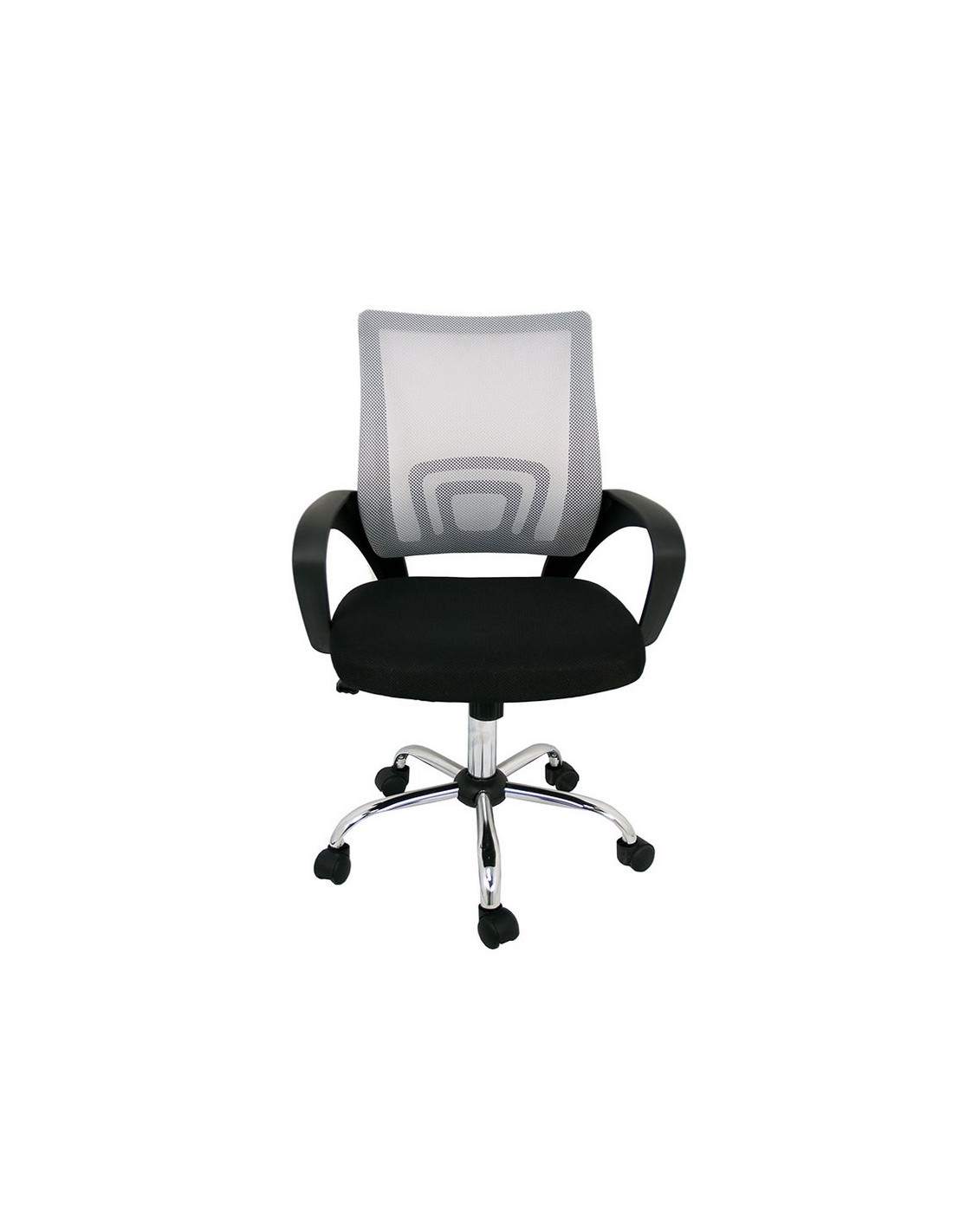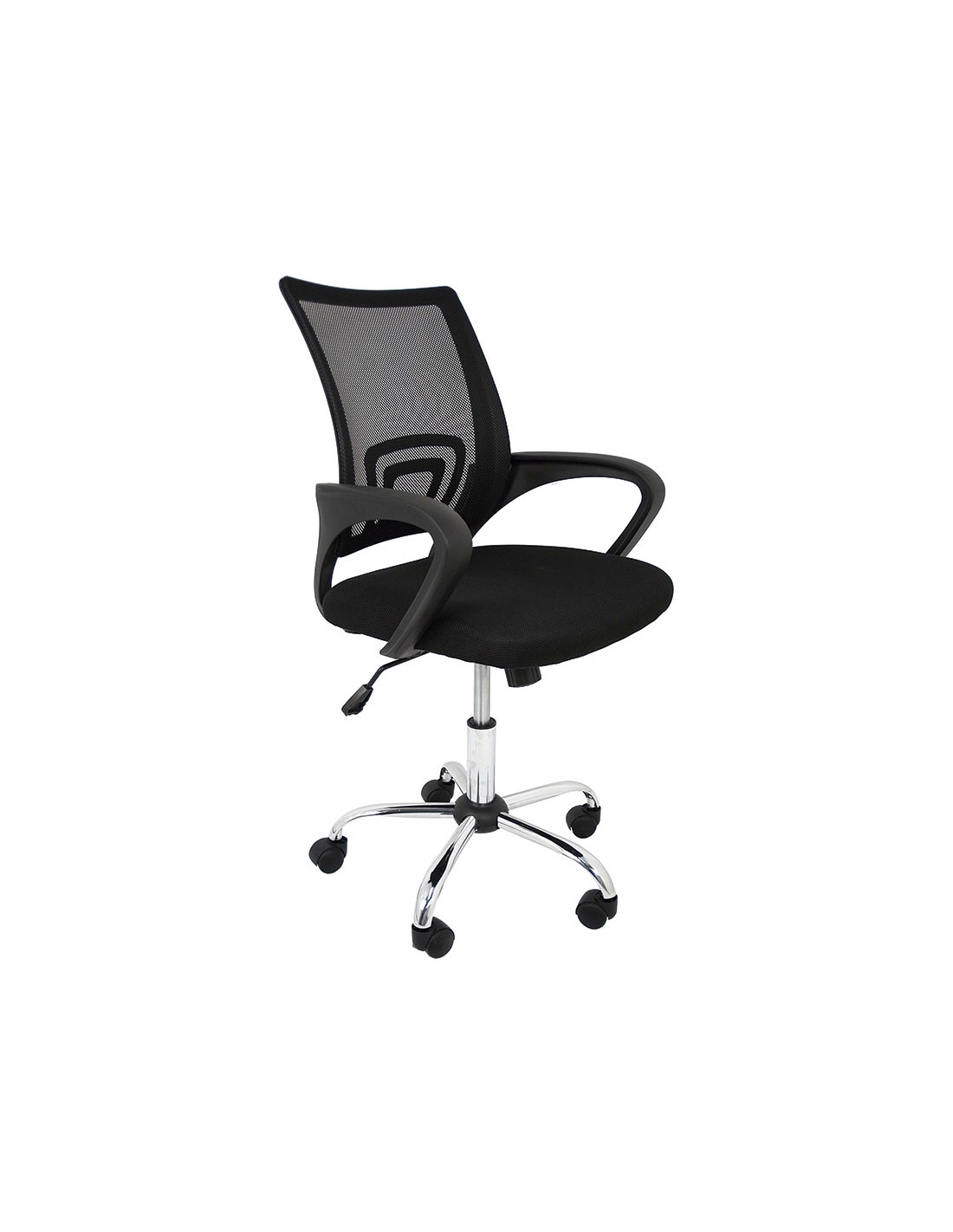 Silla Martina respaldo rejilla Asiento textil. Respaldo transpirable. Base cromada. Color negro. Con brazos.