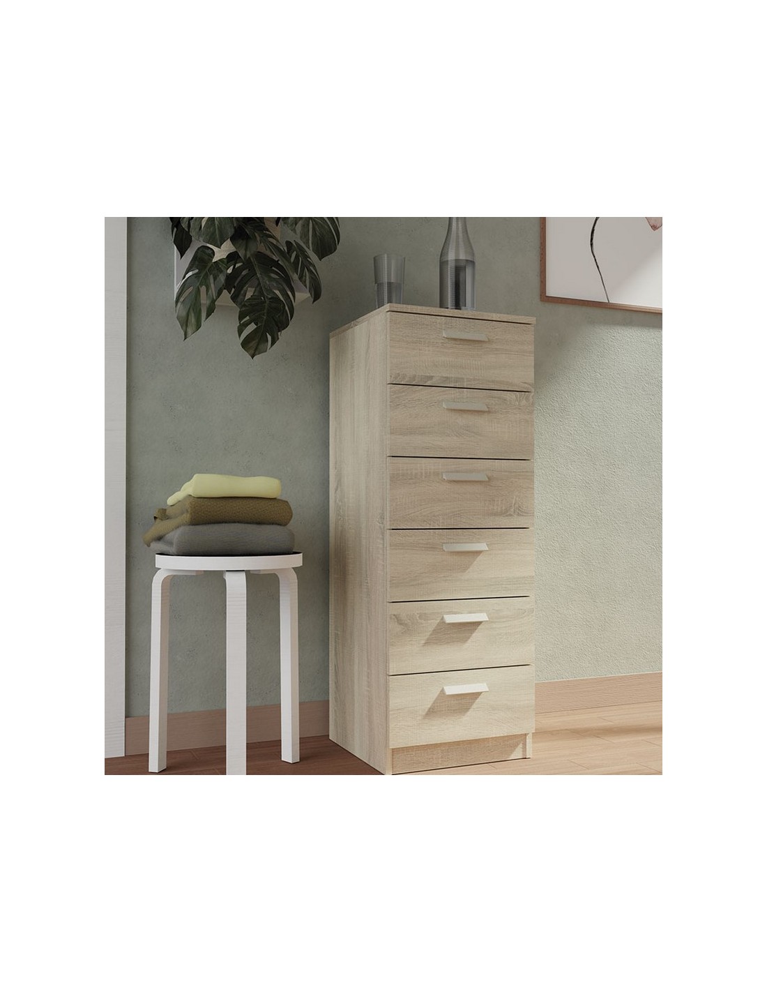 Sinfonier PITARCH Tibet Aglomerado de partículas y melamina de alta densidad. 6 cajones con guías metálicas.. Tiradores plástico ABS. Mueble kit para montaje. 40x40xh.110 cm. Cambrian.