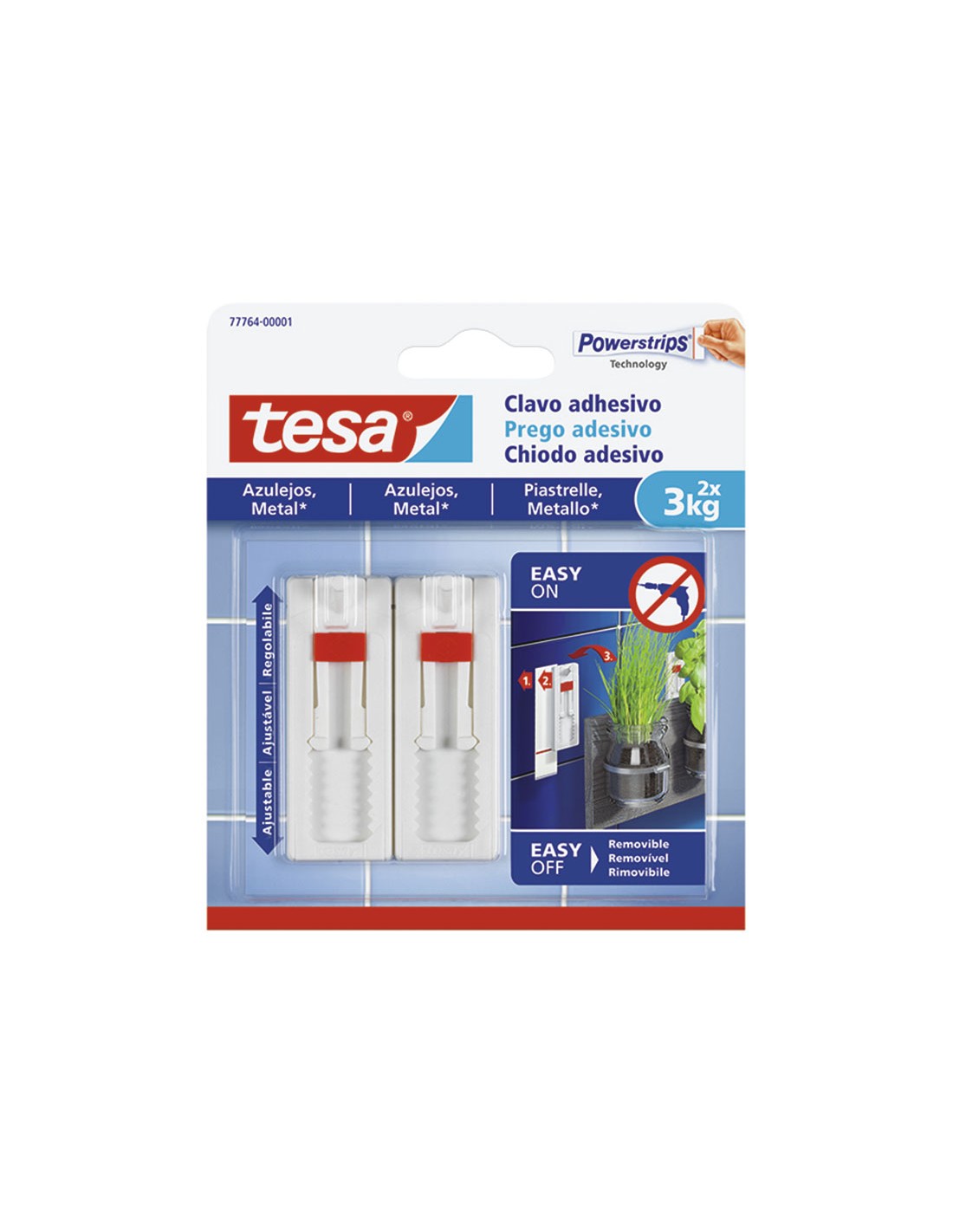 Clavo cuelgacuadros TESA TAPE Smart Mounting. Sin necesidad de hacer agujeros. Enganche fácil y sin dejar residuos al quitarlos. Color blanco. Blíster 2 unidades. Superficies lisas (azulejos y metal).