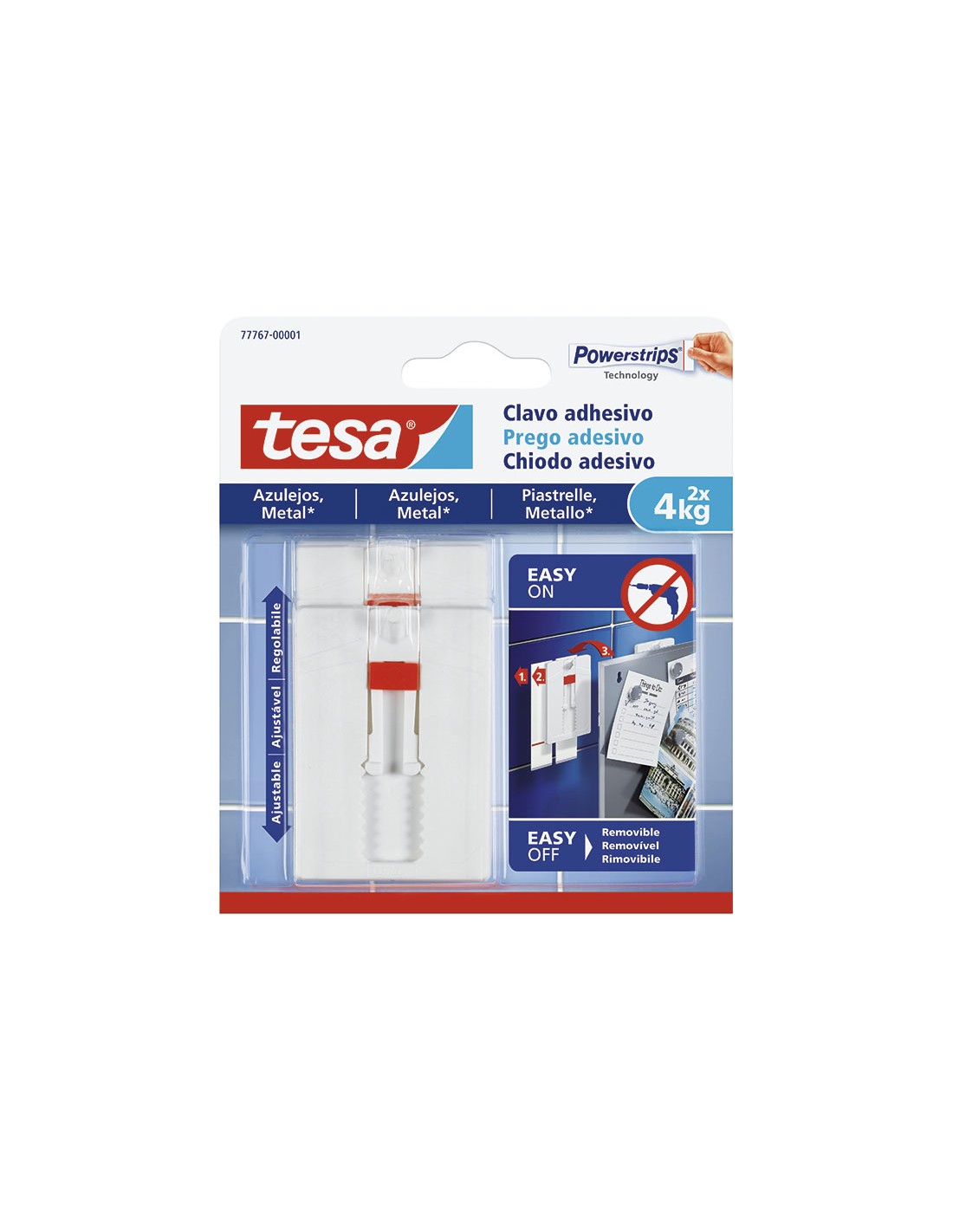 Clavo cuelgacuadros TESA TAPE Smart Mounting. Sin necesidad de hacer agujeros. Enganche fácil y sin dejar residuos al quitarlos. Color blanco. Blíster 2 unidades. Superficies lisas (azulejos y metal).