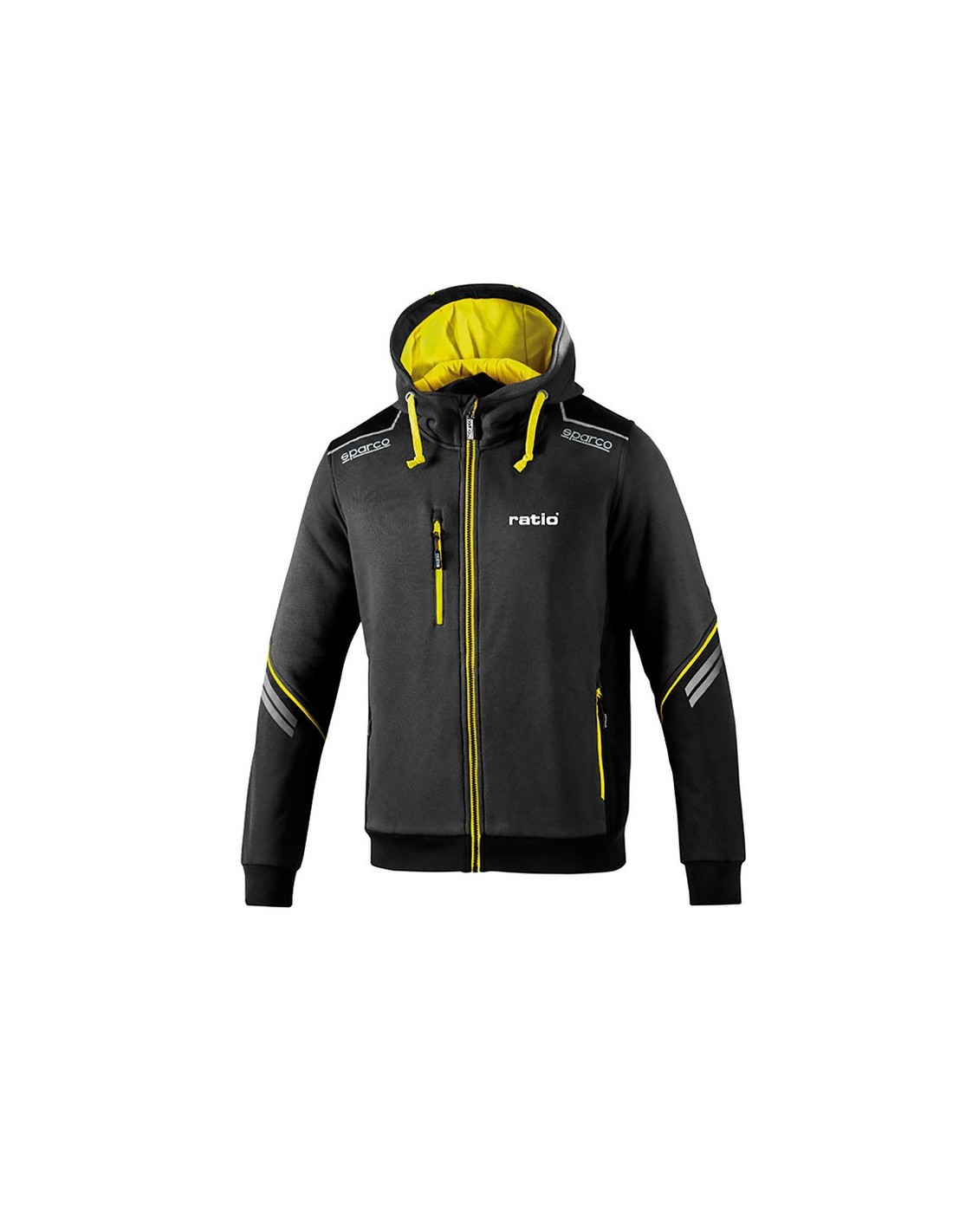 Sudadera RATIO Tech confeccionada en un 80% de algodón, 20% de poliéster /280gr. Dispone de logotipos reflectantes en mangas reforzadas con inserciones antiabrasión y rayas reflectantes de alta visibilidad. Con inserciones de refuerzo en hombros, bolsillos laterales y en el pecho dispone de cremallera ultra deslizante con cierre de cremallera invertida, capucha ajustable integrada con interior en contraste. Es de color gris/amarillo y está disponible en diferentes tallas y viene presentado en bolsa.
