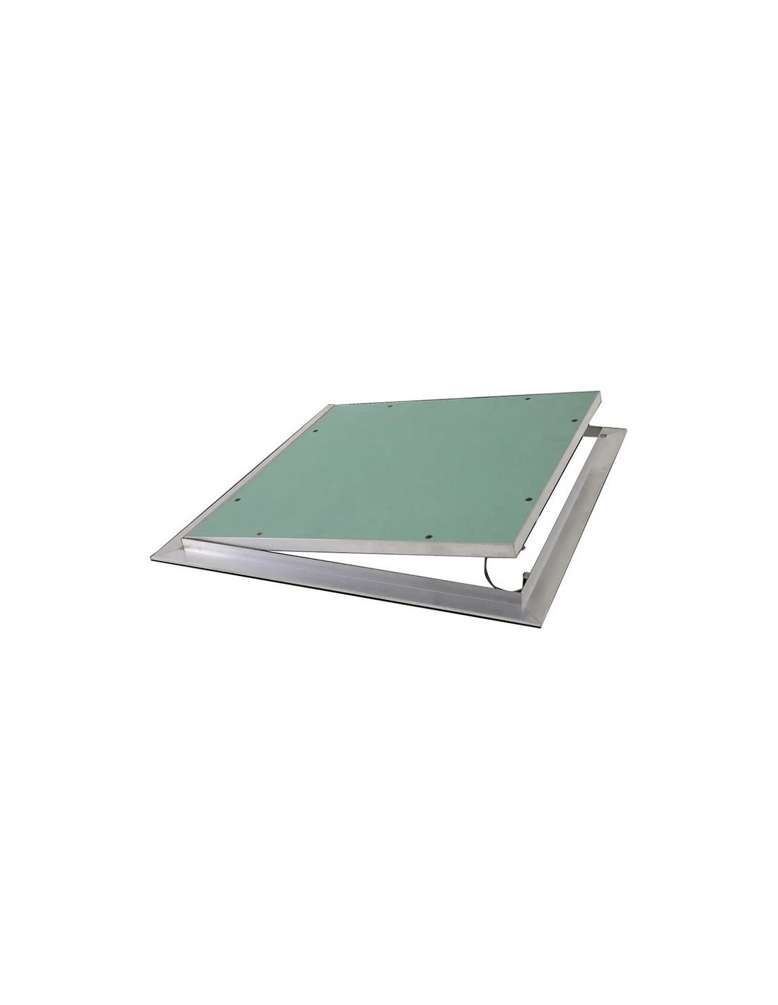 Trampilla registro aluminio DESA 13 eco Cartón yero hidrófugo. Cierre perimetral. Apertura mediante clips metálicos. Retención tapa mediante mosquetón y cable metálico. 500x500 m.