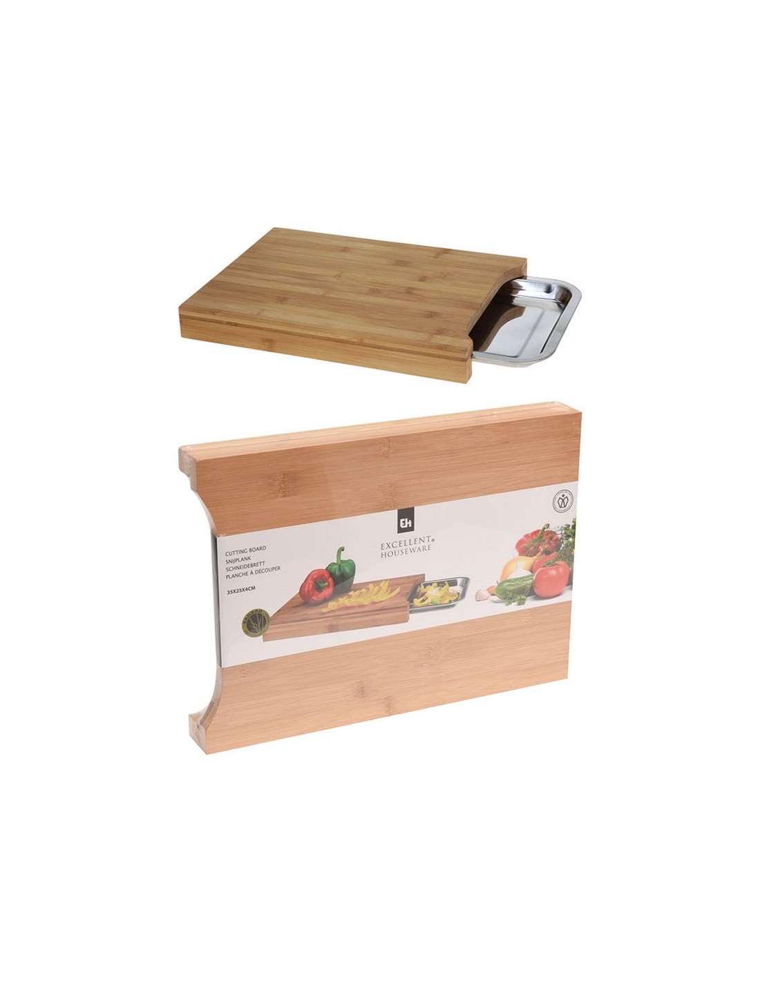 Tabla cortar con cajón Bambú. Cajón acero inoxidable. 35x25xh.4 cm.