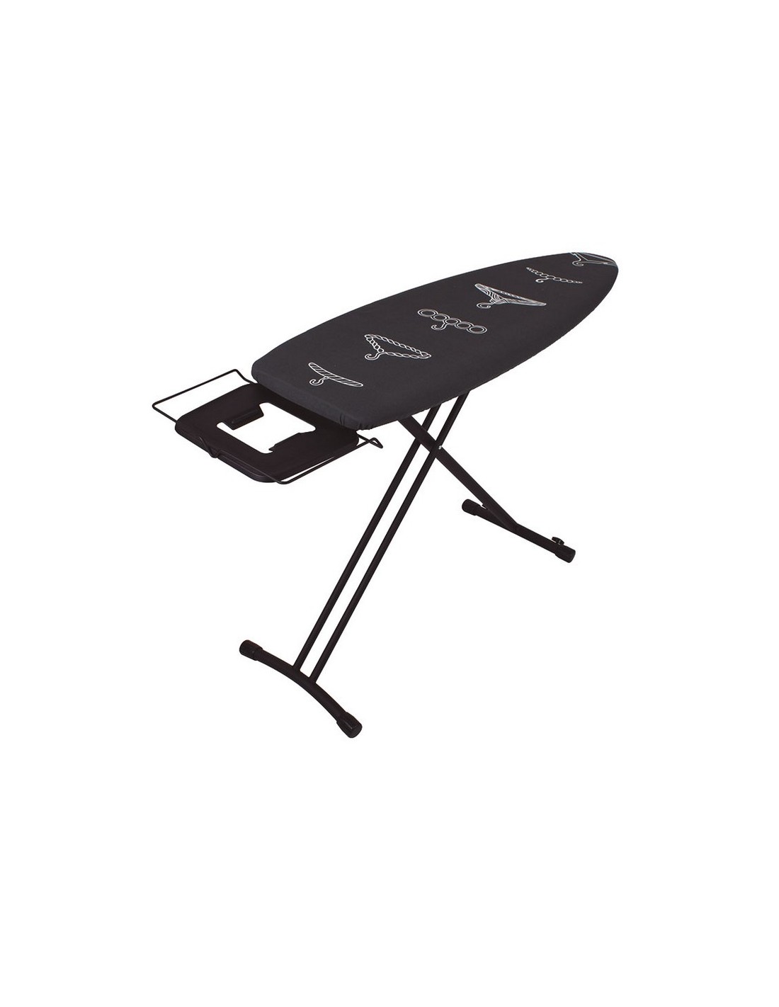 Tabla planchar HABITEX Azores Rejilla metálica. 3 Patas: 1 tubo ø 35 mm + 2 tubo ø 22 mm. pintadas epoxi negro.. Regulación altura automática. Reposaplanchas especial centros planchado retraíble.. Funda 100% algodón de 8 mm. espesor. Pies antideslizantes. Mesa: 130x47 cm.