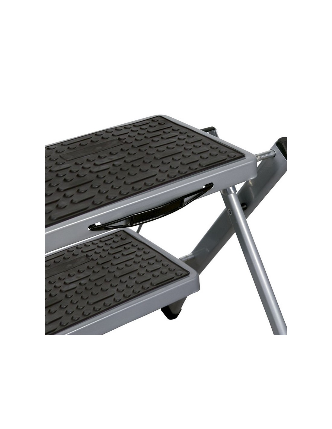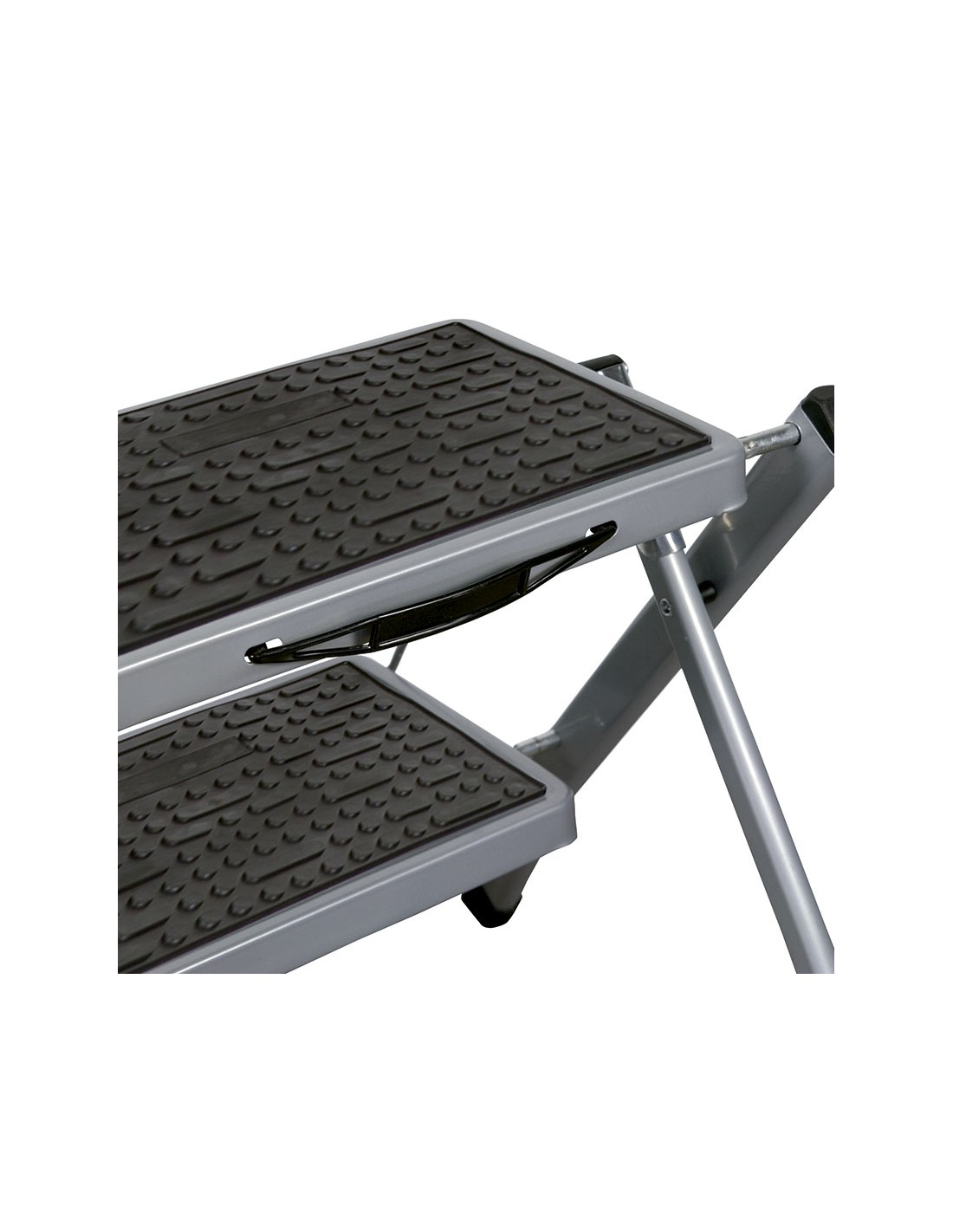 Escalera doméstica HABITEX Acero. Dispositivo seguridad contra apertura durante el uso. Peldaños 30x20 cm. Asa de transporte. 2 peldaños.
