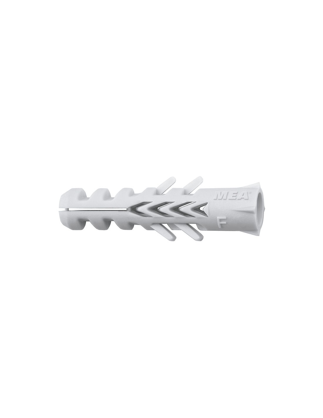 Taco nilón CELO NF. Apertura lateral para mayor expansión. 4 aletas anti-giro. Interior con guía direccional en el inicio del roscado. Adecuado para cargas ligeras y medias. ø 5 mm. 100 unid.
