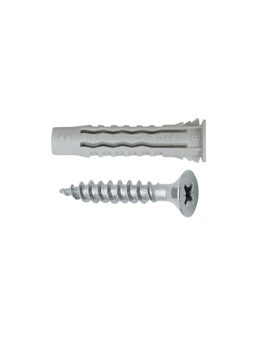 Taco nilón 4 caras + tornillo aglomerado EHS Tornillo cincado. Presentados en blíster rígido. M5 + 3,5x35 mm. 6 unid.